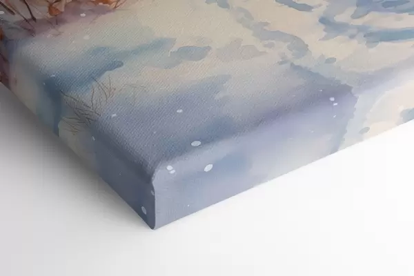Glezna Akvarelis ziemas mežs, sniegpārslas, skaistas debesis, saulriets s41640