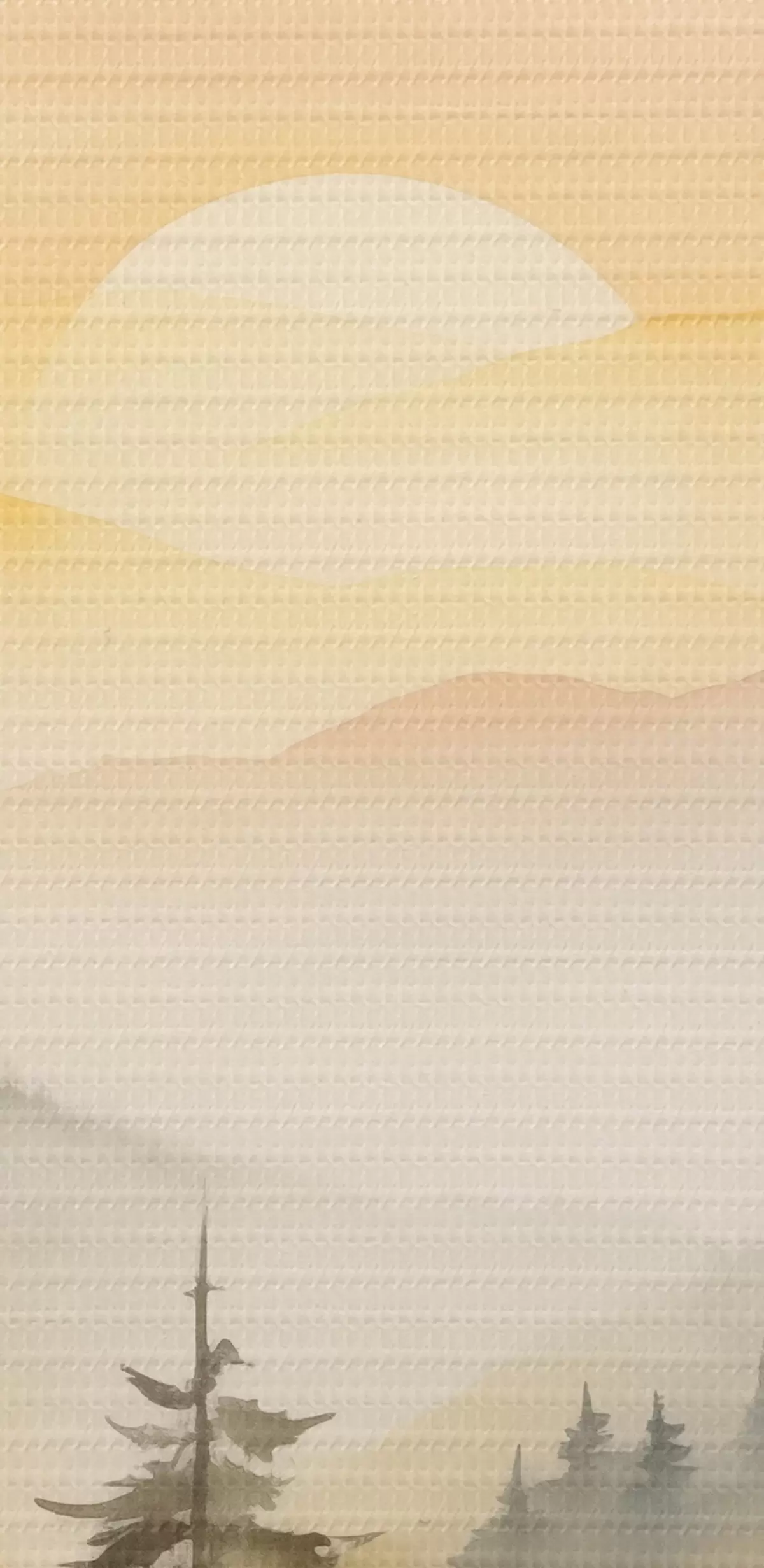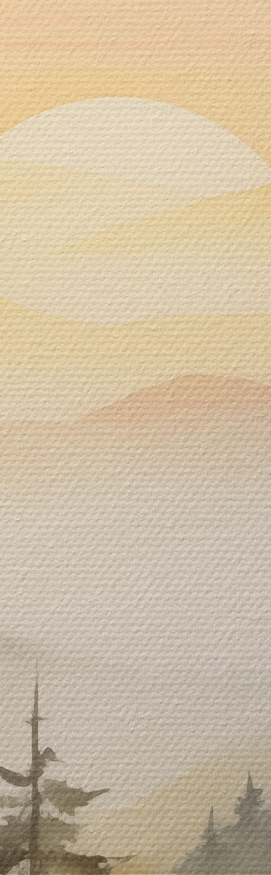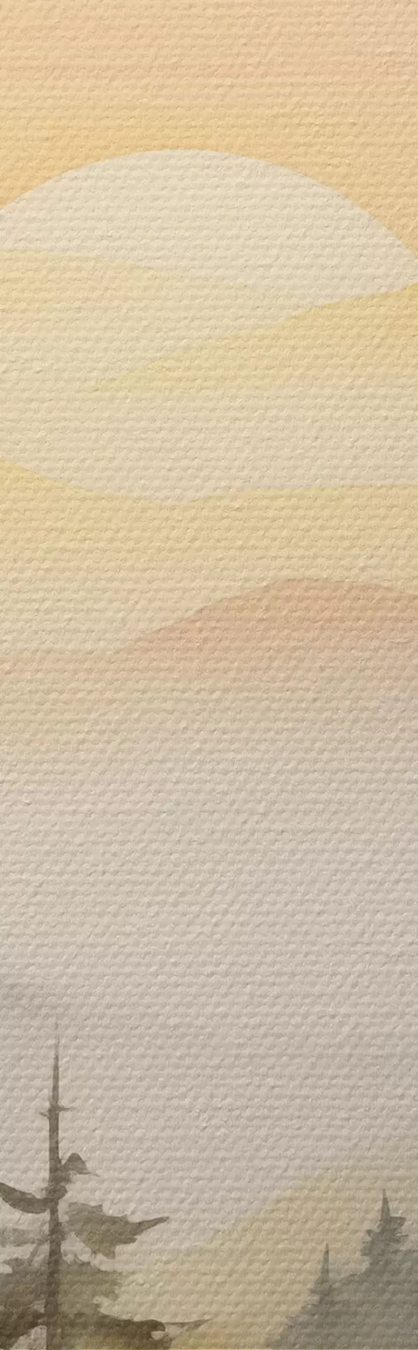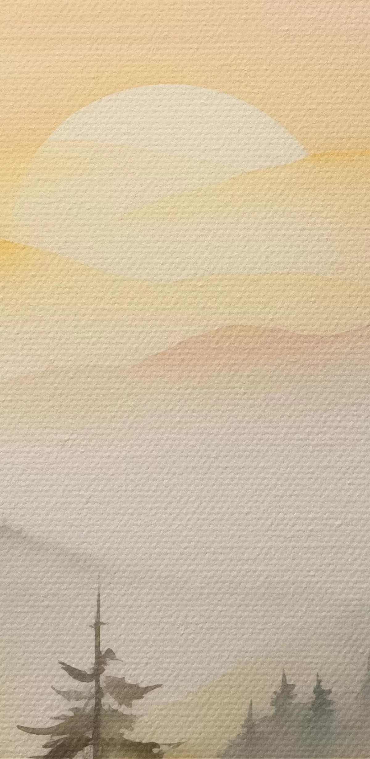 Glezna Rudens kalnu ainava, priežu mežs, saulriets, akvarelis  s41645