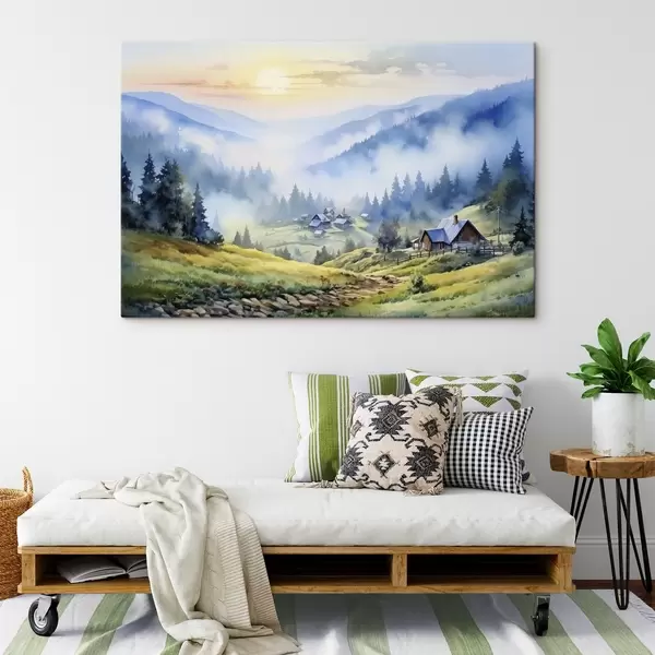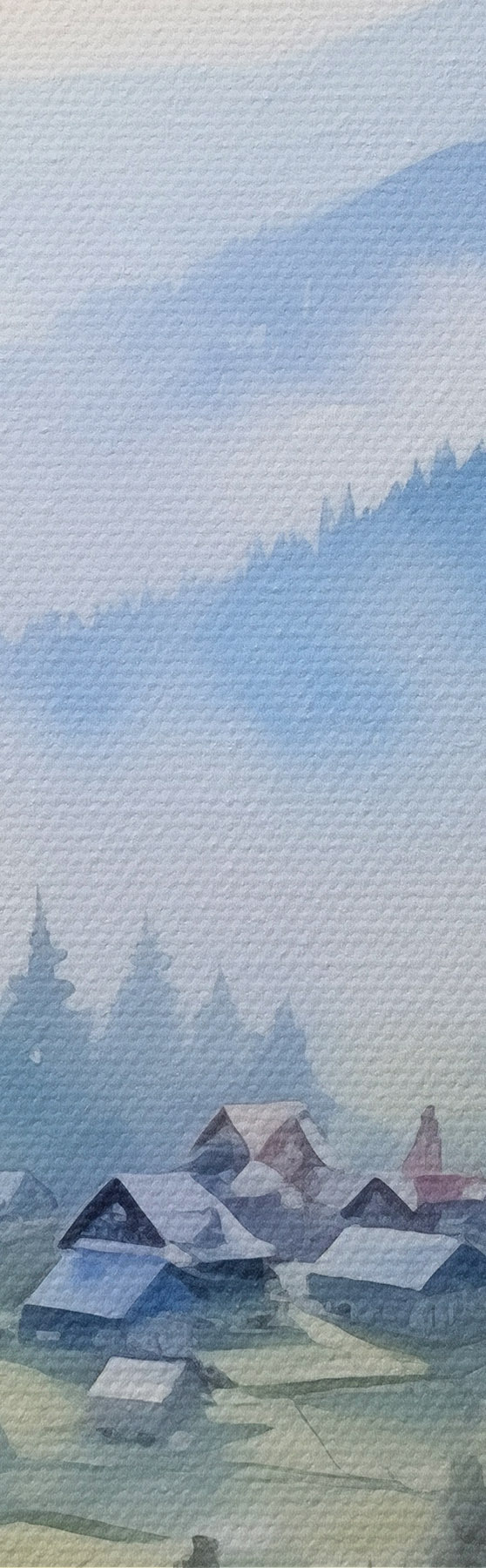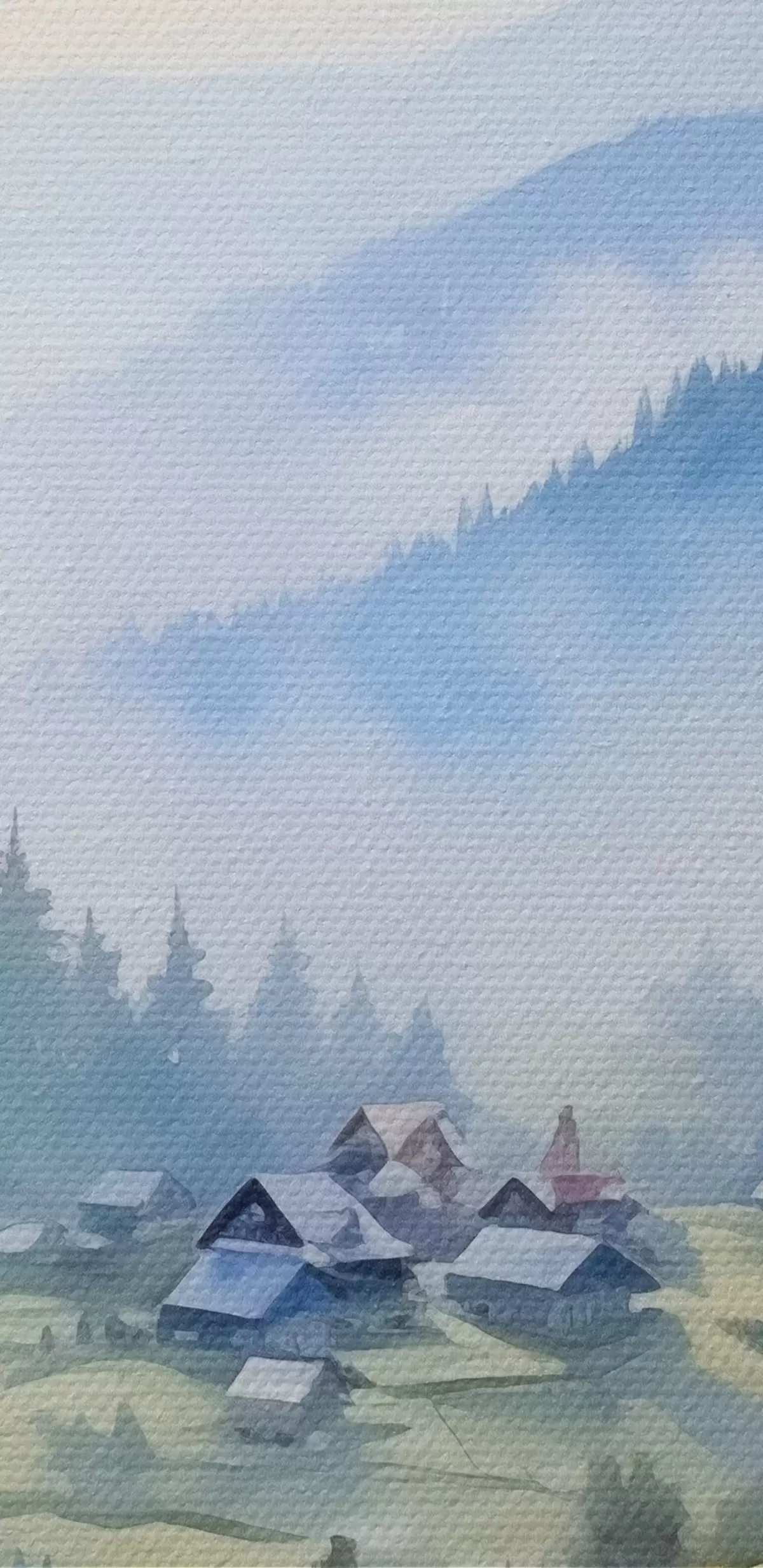 Glezna Karpatu ciemats miglainos kalnos, mežs, akvarelis Nr s41648