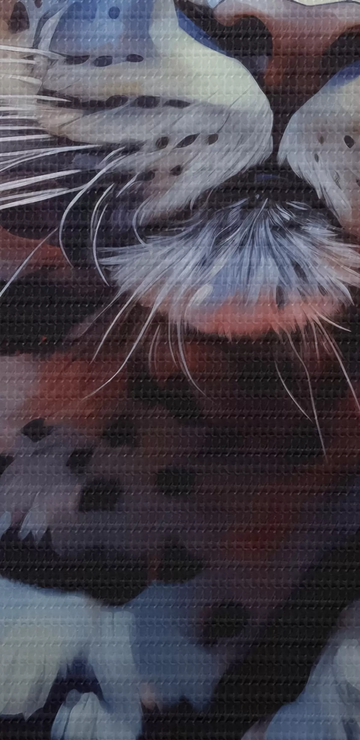 Smalkais diegu pinums uz šī audekla atgādina profesionālu mākslinieku audeklu virsmu.