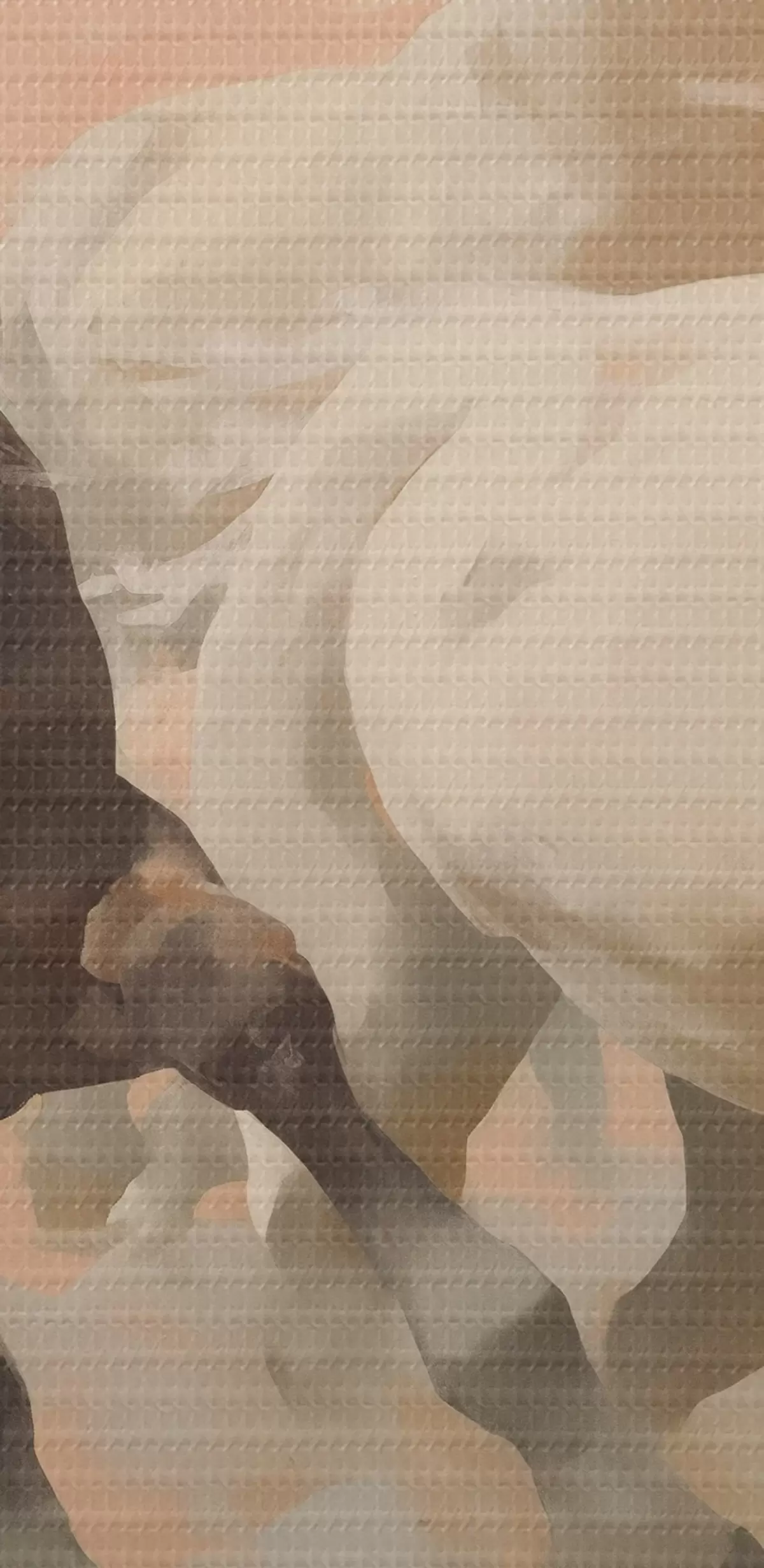Smalkais diegu pinums uz šī audekla atgādina profesionālu mākslinieku audeklu virsmu.