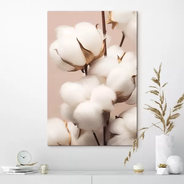 Glezna Kokvilnas ziedi uz bēša fona s41706