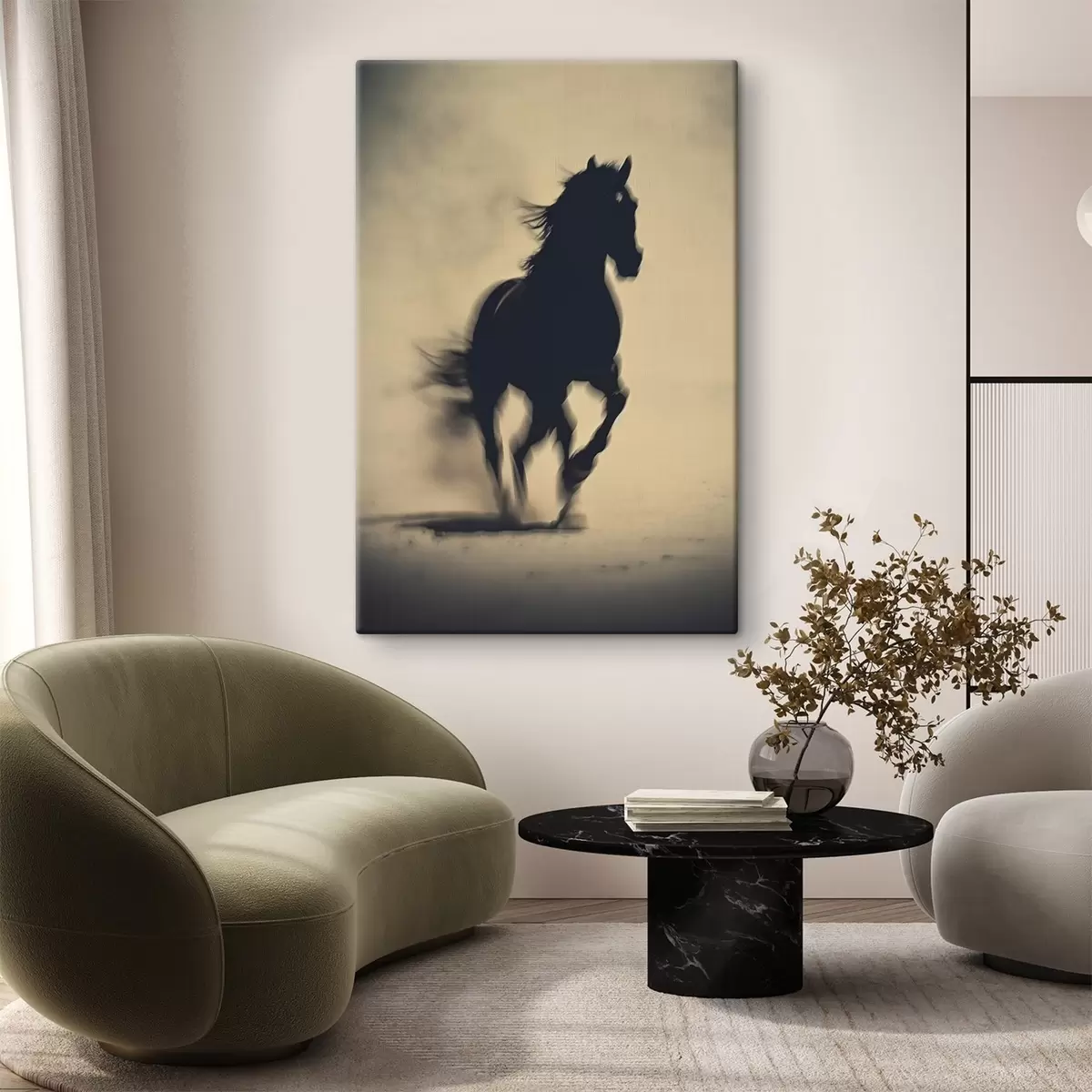 Glezna Melna zirga siluets neskaidrā stilā Nr s41708