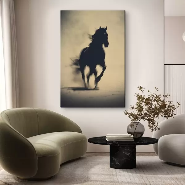 Glezna Melna zirga siluets neskaidrā stilā s41708
