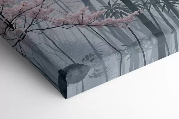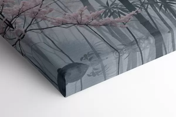 Glezna Pilns mēness nakts debesīs, ko ieskauj bambusa koku silueti un ķiršu ziedu zari  s41717