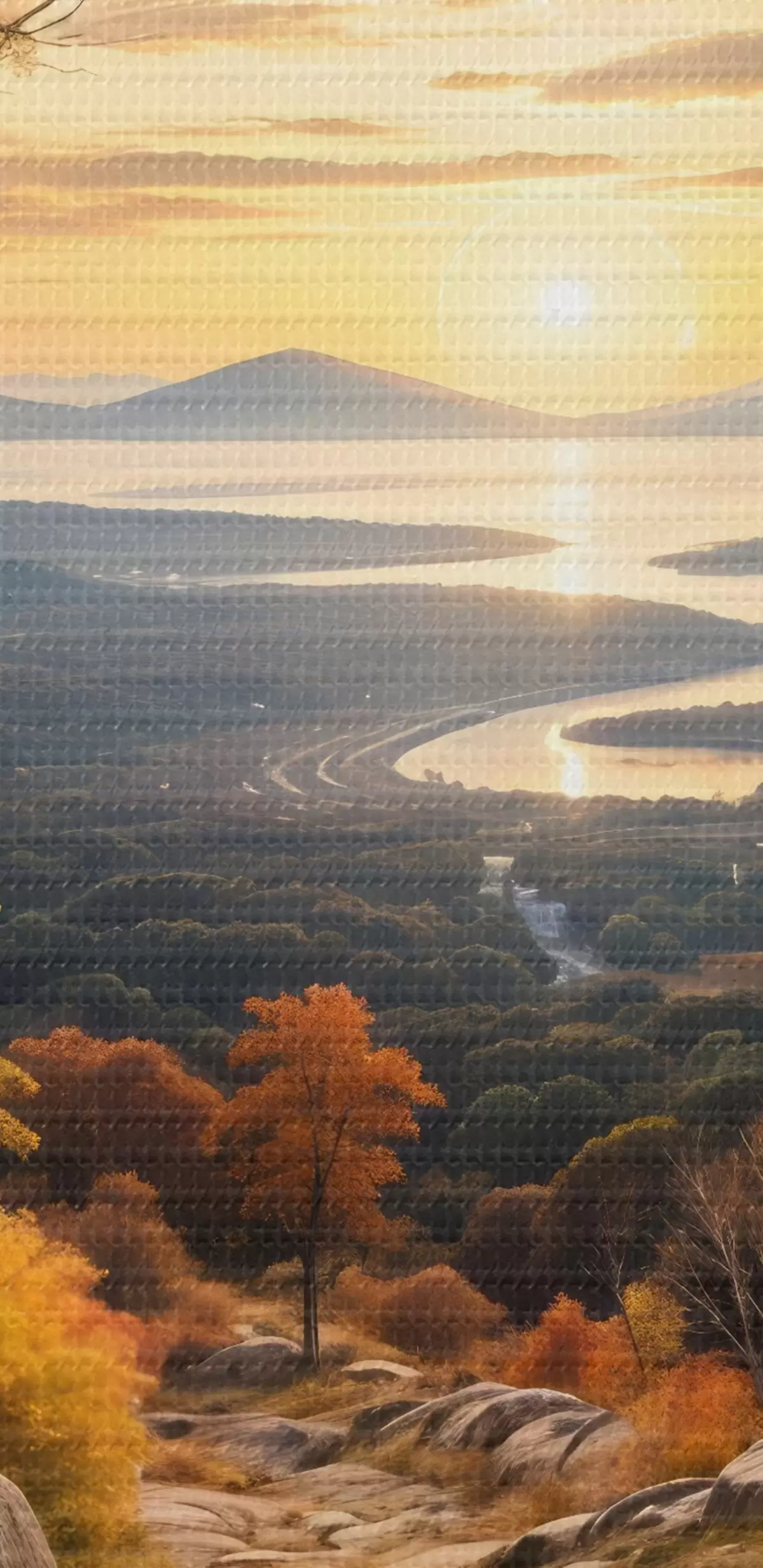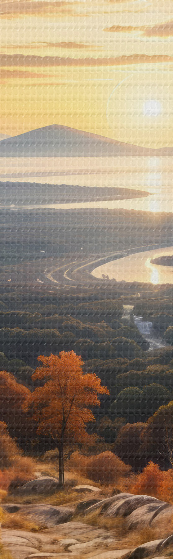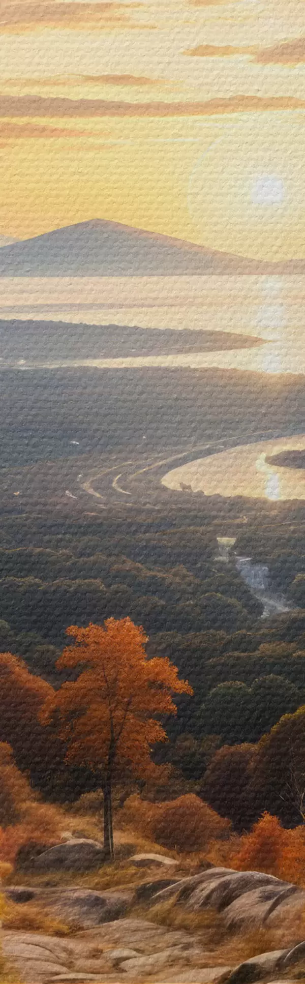 Glezna Ainava ar līkumainu zemes ceļu, kas ved cauri rudenīgi iekrāsotu koku mežam un saulrieta debesīm Nr s41732