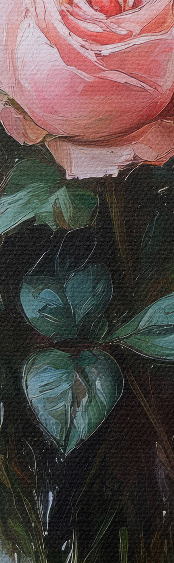 Smalkais diegu pinums uz šī audekla atgādina profesionālu mākslinieku audeklu virsmu.