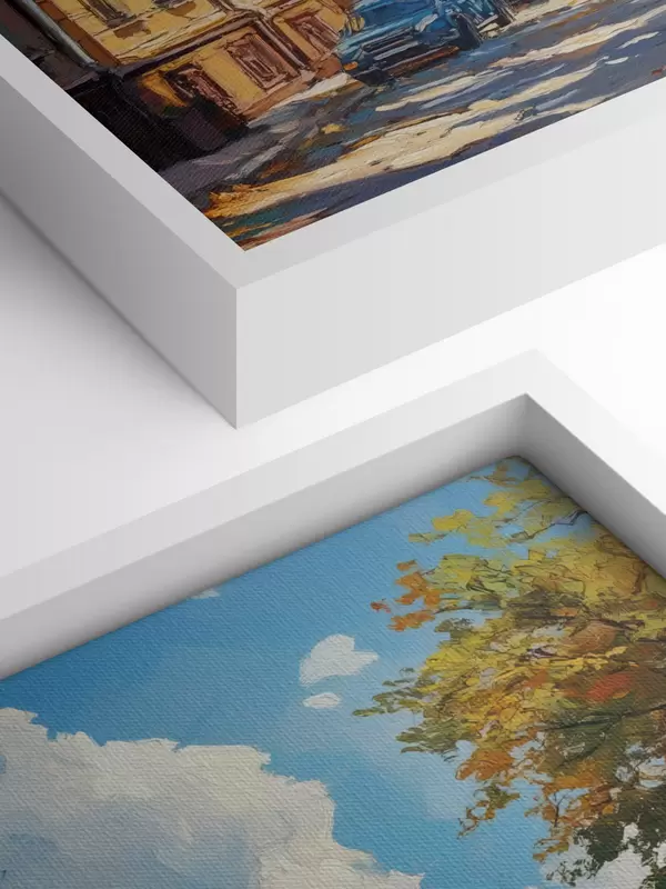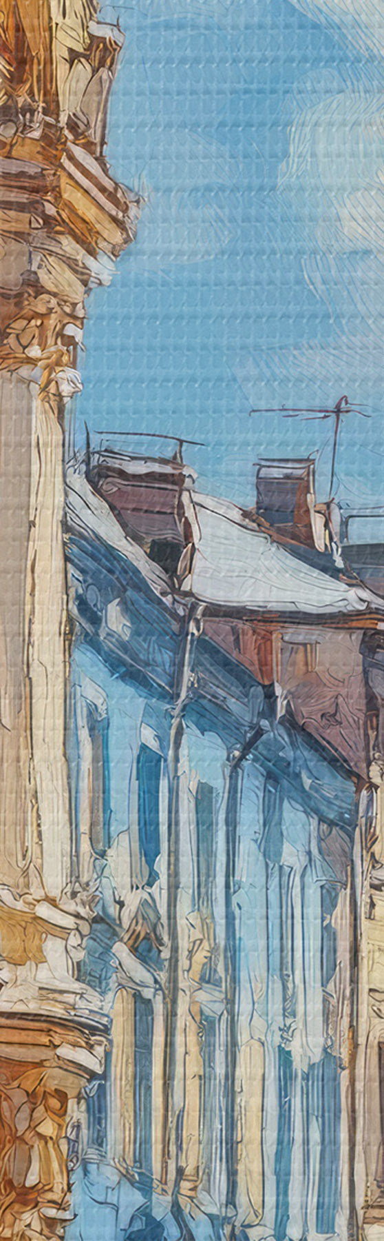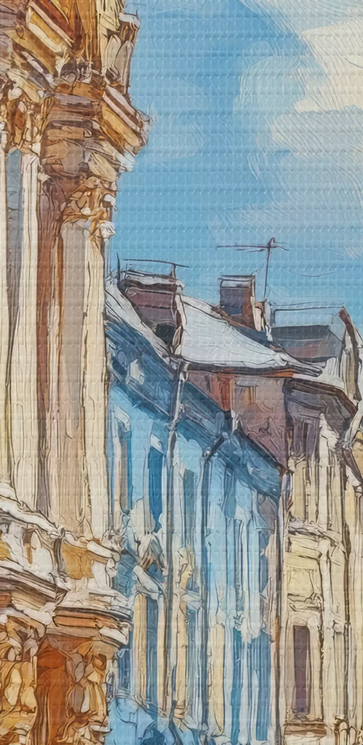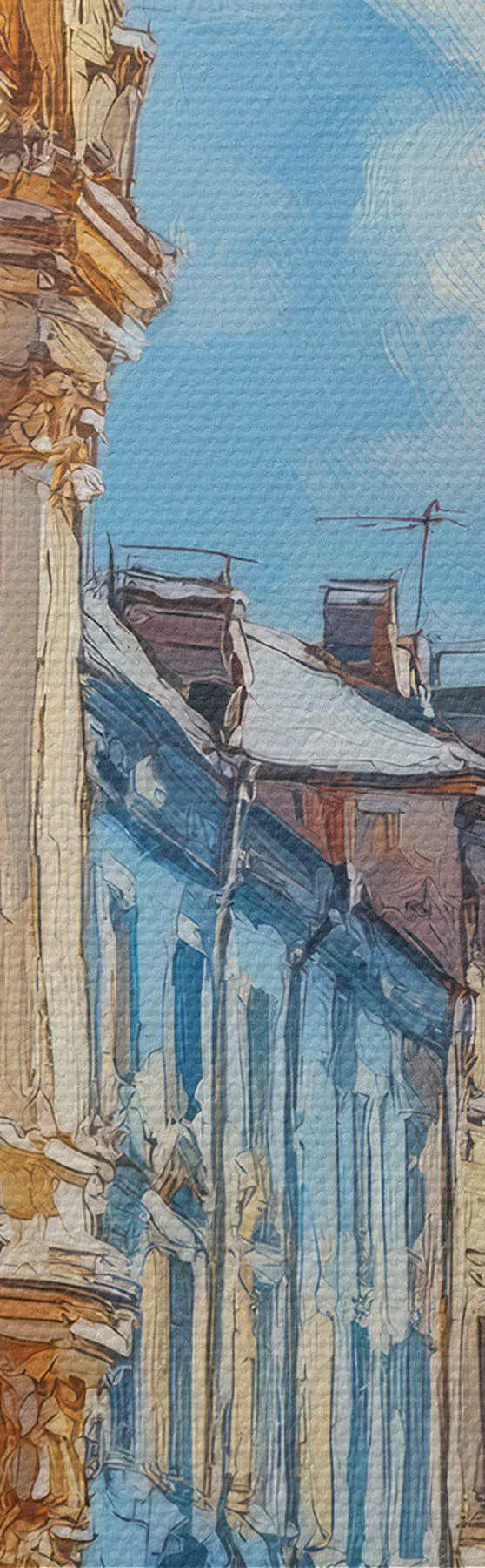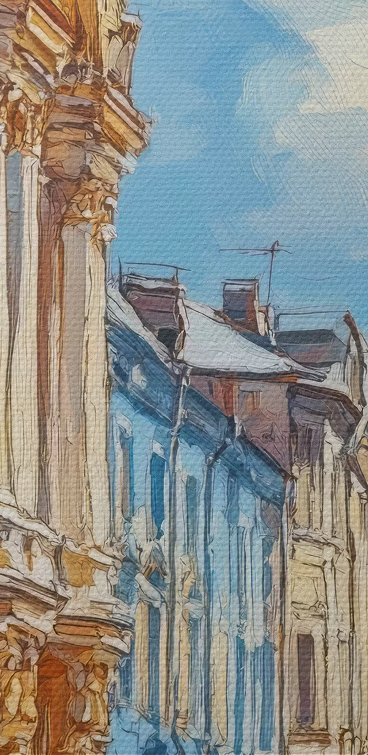 Glezna Pilsētas iela saulainā dienā, eļļas krāsas stilā s41751