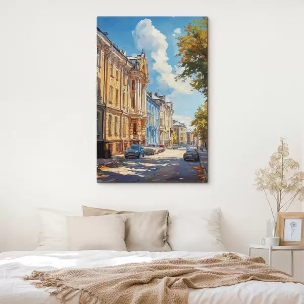 Glezna Pilsētas iela saulainā dienā, eļļas krāsas stilā Nr s41751