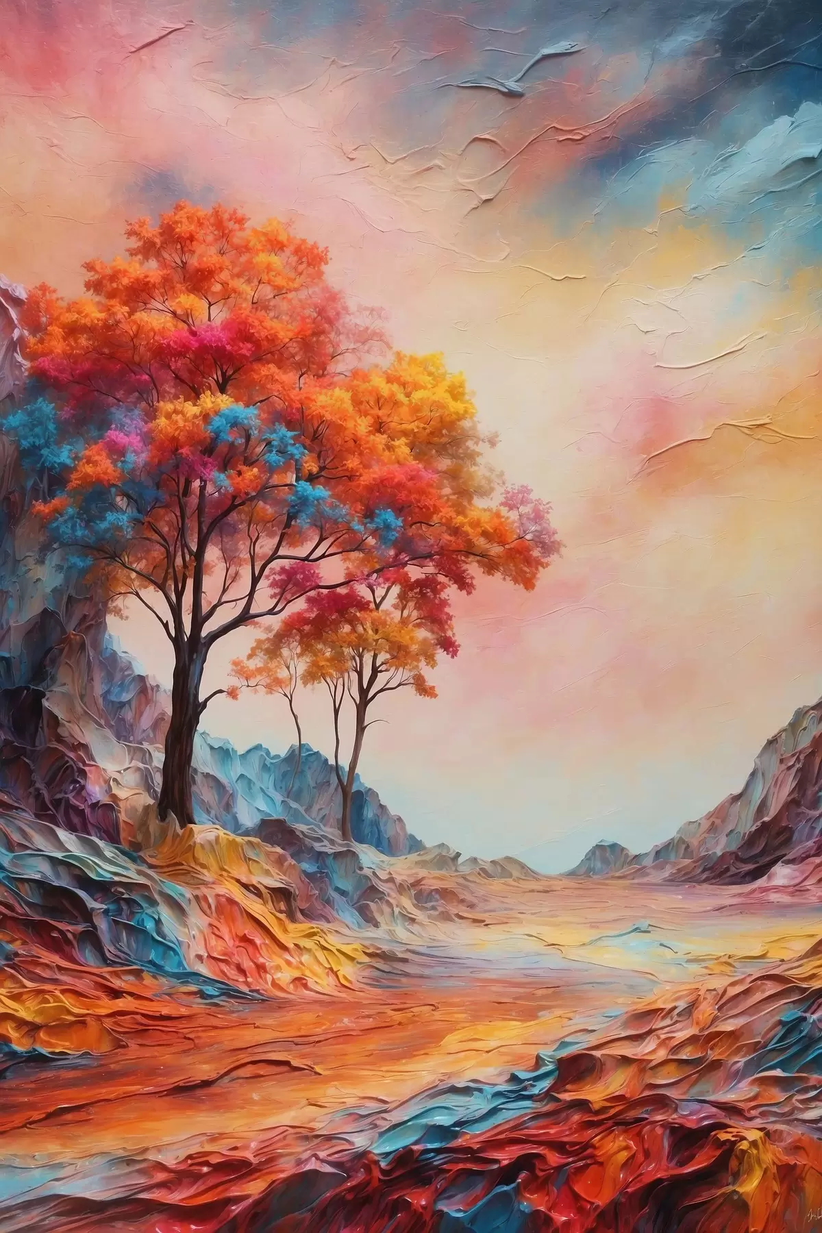 Glezna Koki un abstrakti daudzkrāsaini kalni s41772