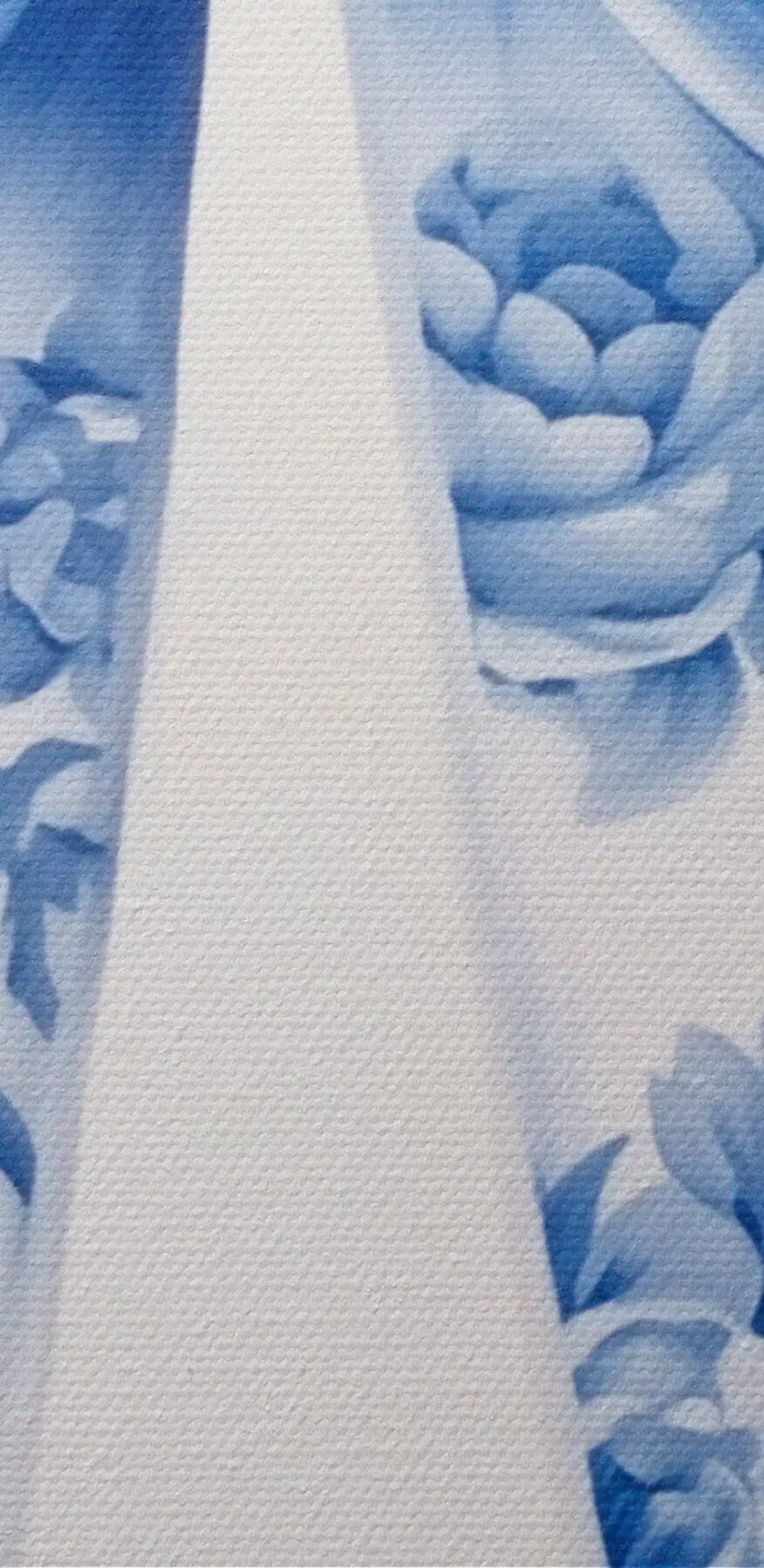 Smalkais diegu pinums uz šī audekla atgādina profesionālu mākslinieku audeklu virsmu.