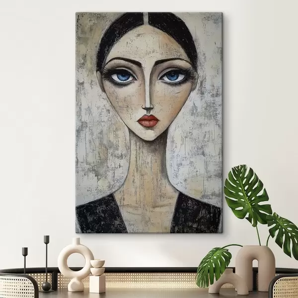 Glezna Sievietes portrets ar izteiksmīgām acīm stilizētā tehnikā s41811