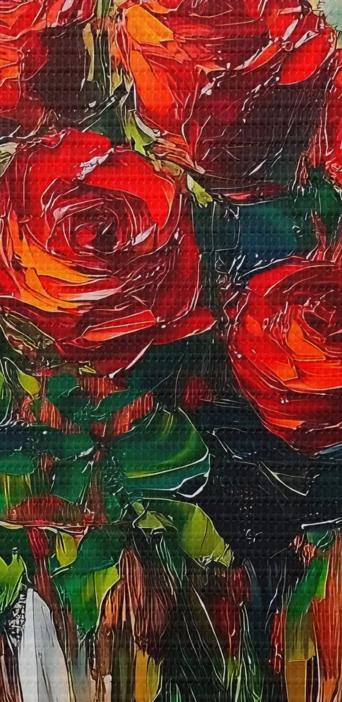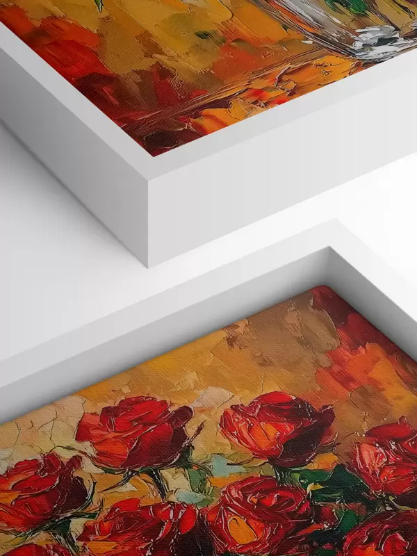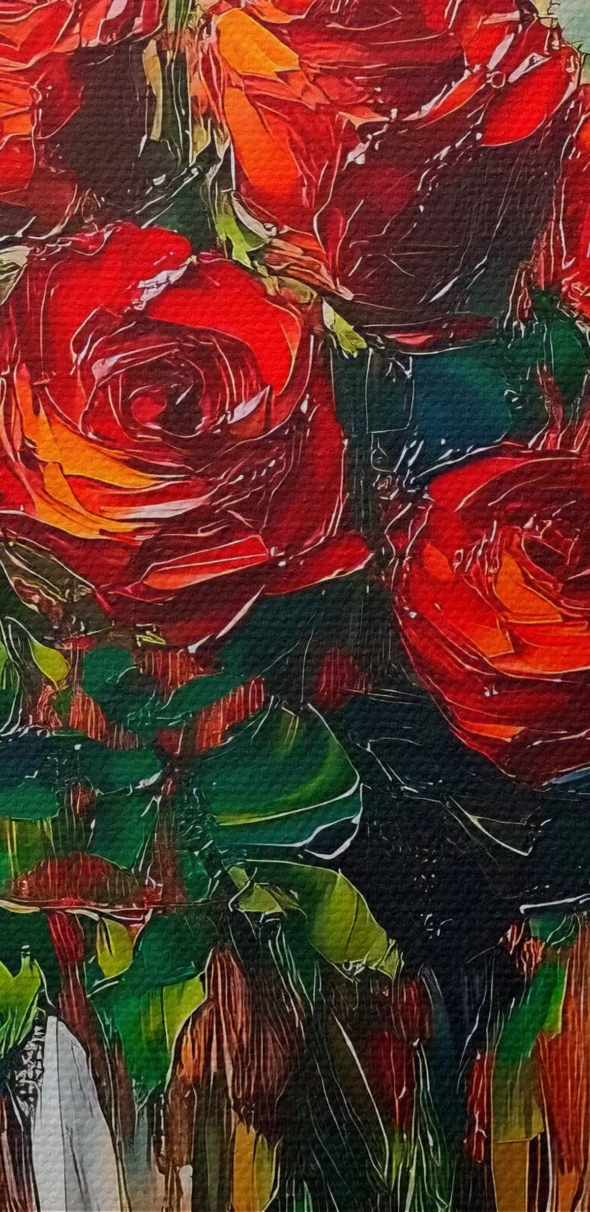 Glezna Sarkanas rozes caurspīdīgā vāzē uz silta fona Nr s41816