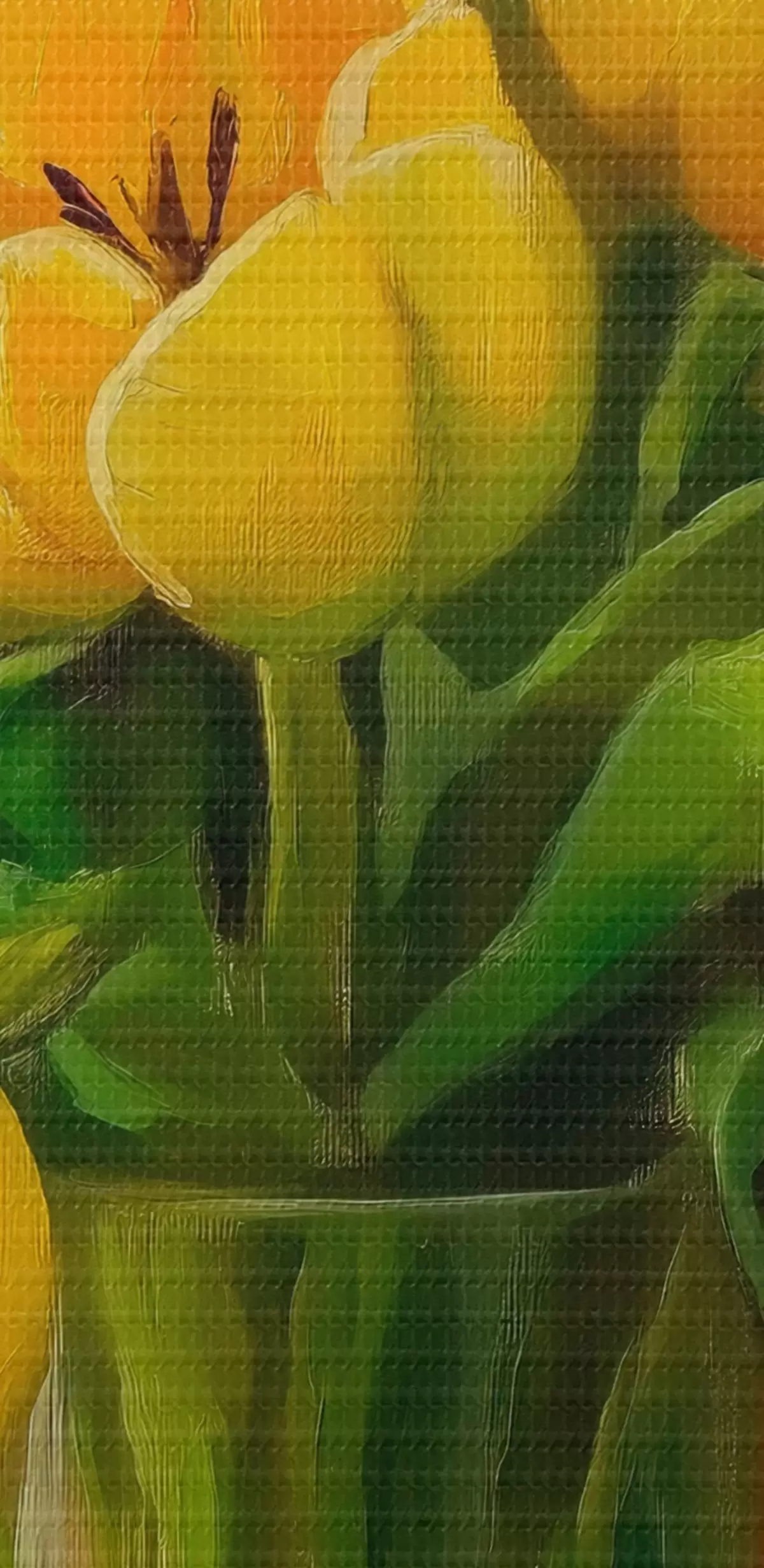 Glezna Dzeltenas tulpes caurspīdīgā vāzē Nr s41817