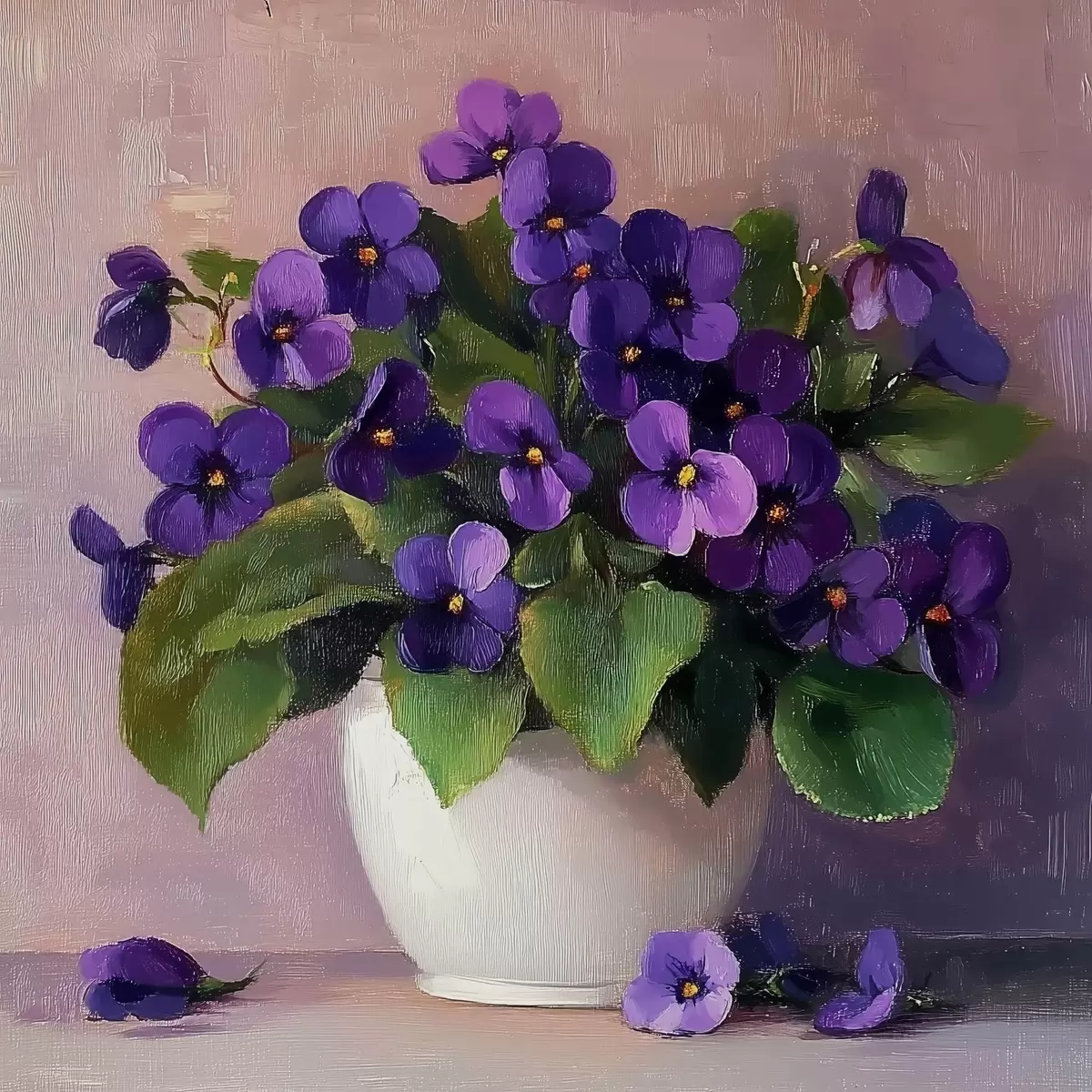 Glezna Violetās vijolītes baltā podā Nr s41823