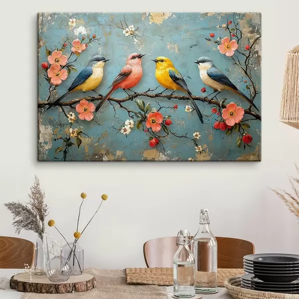Glezna Putni uz sakuras zara eļļas glezniecības stilā Nr s41834