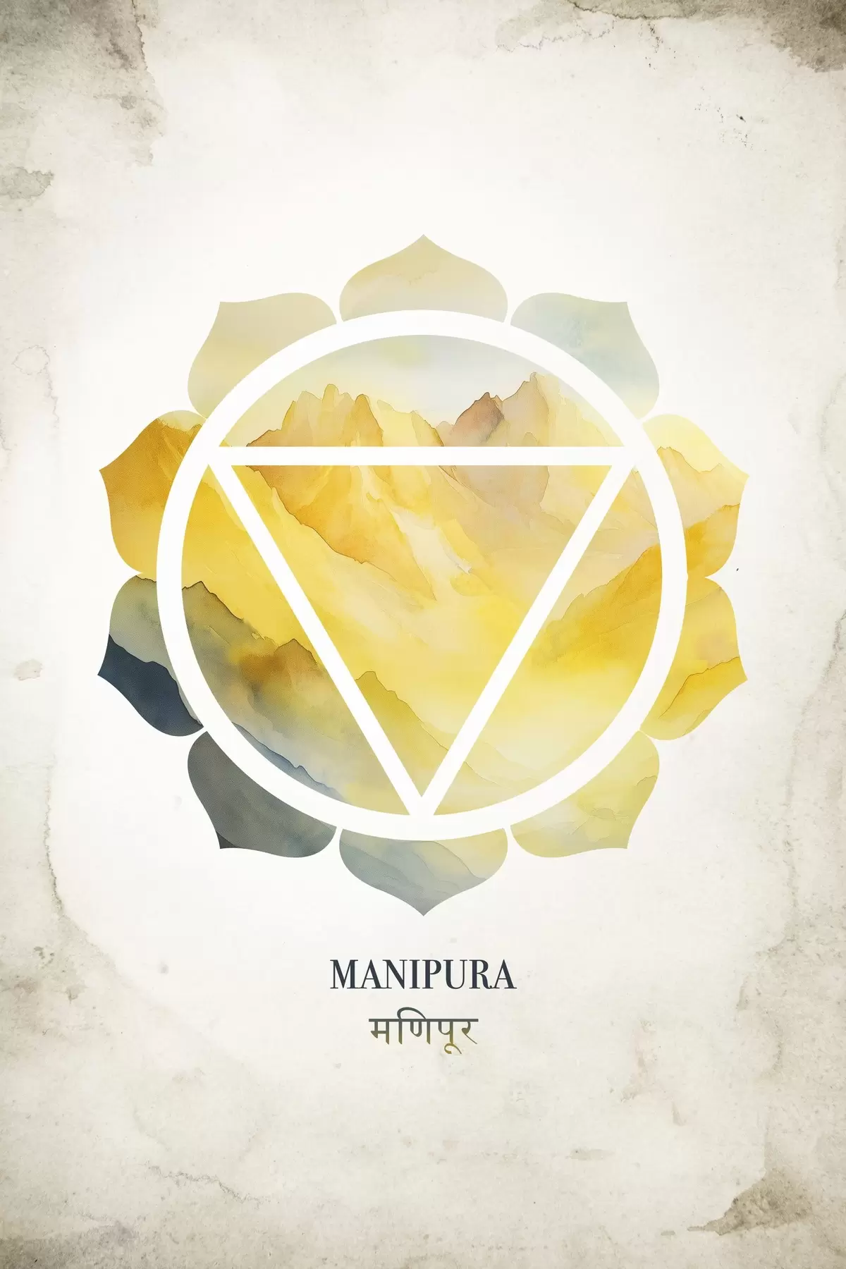 Glezna Manipura čakra, dzeltenā čakra, ezotērika, meditācija, budisms, akvareļu stila kalni s41882