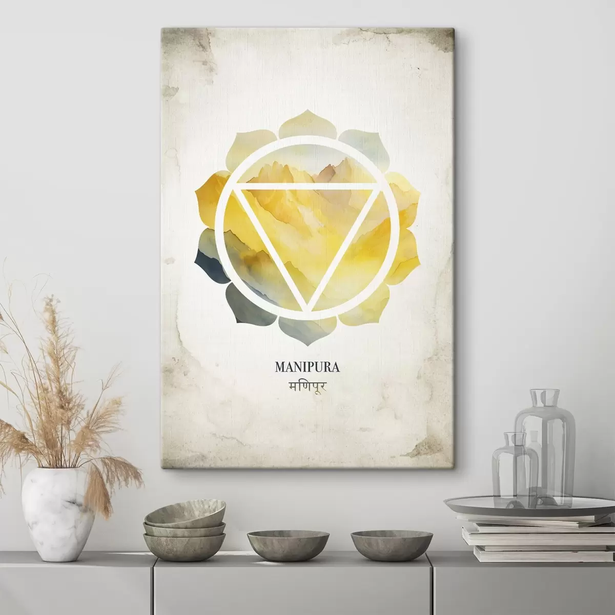 Glezna Manipura čakra, dzeltenā čakra, ezotērika, meditācija, budisms, akvareļu stila kalni Nr s41882