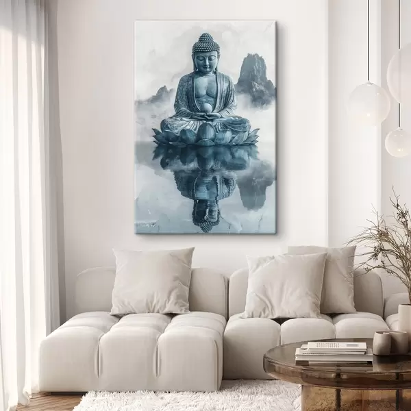 Glezna Budas statuja, austrumu stils, budisms, kalni, ezers, meditācija, garīgais, garīgais Nr s41890