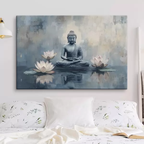 Glezna Meditējošs Buda ezerā ar lotosiem, austrumu, akrila stilā Nr s41891