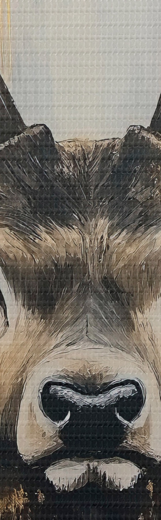 Smalkais diegu pinums uz šī audekla atgādina profesionālu mākslinieku audeklu virsmu.