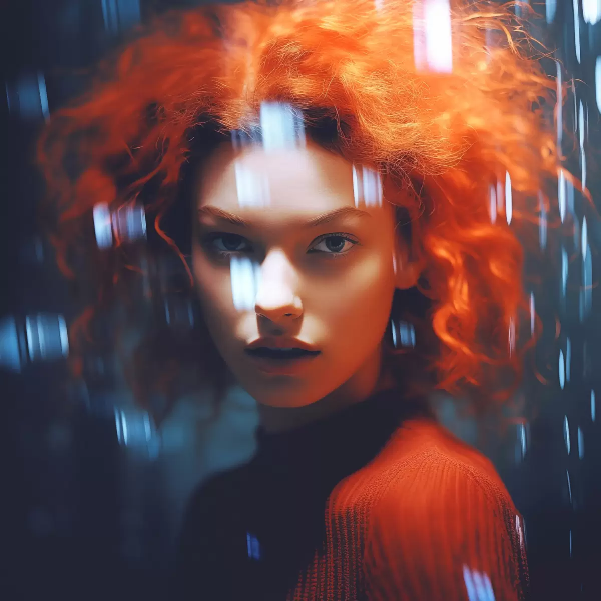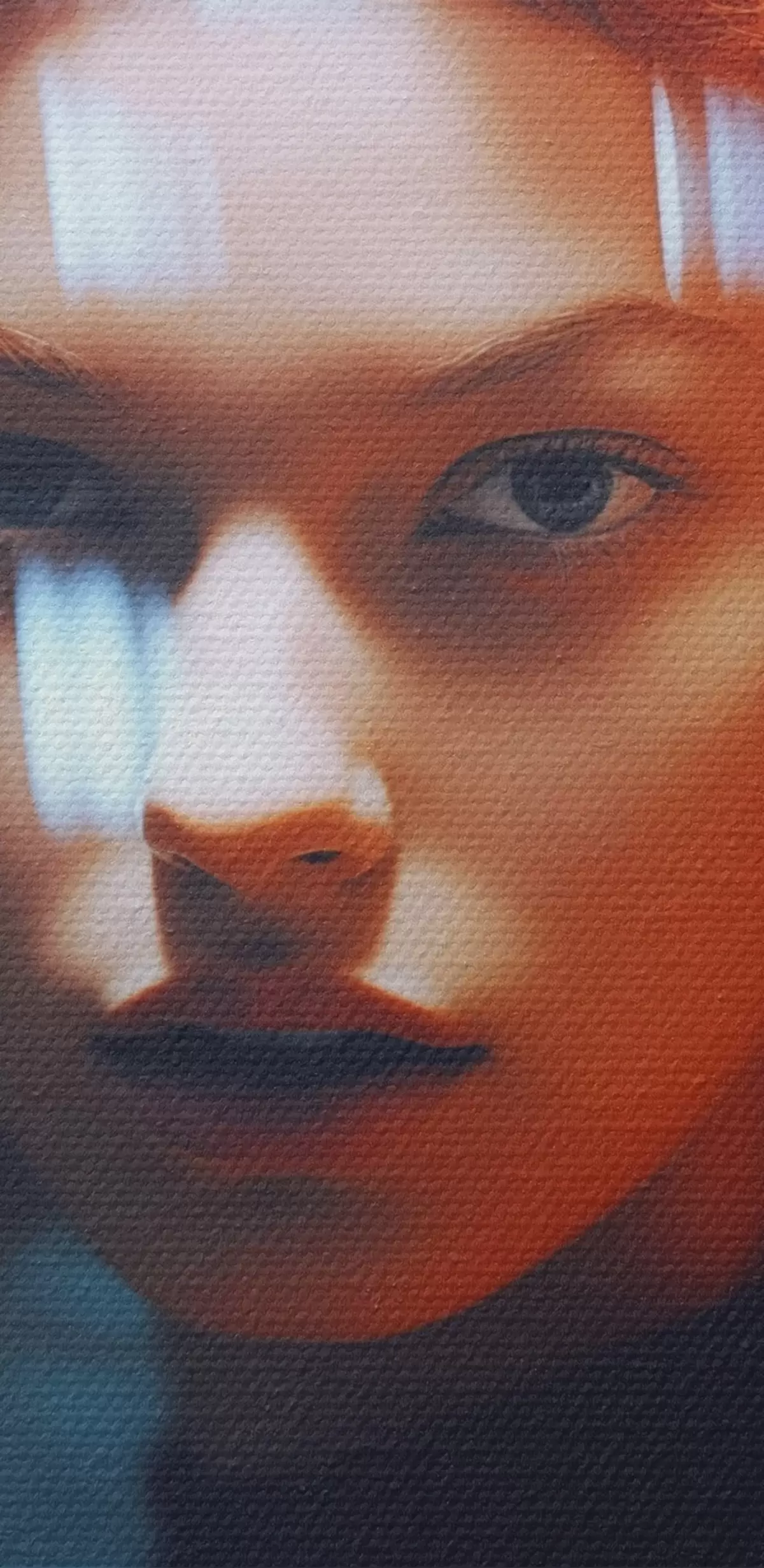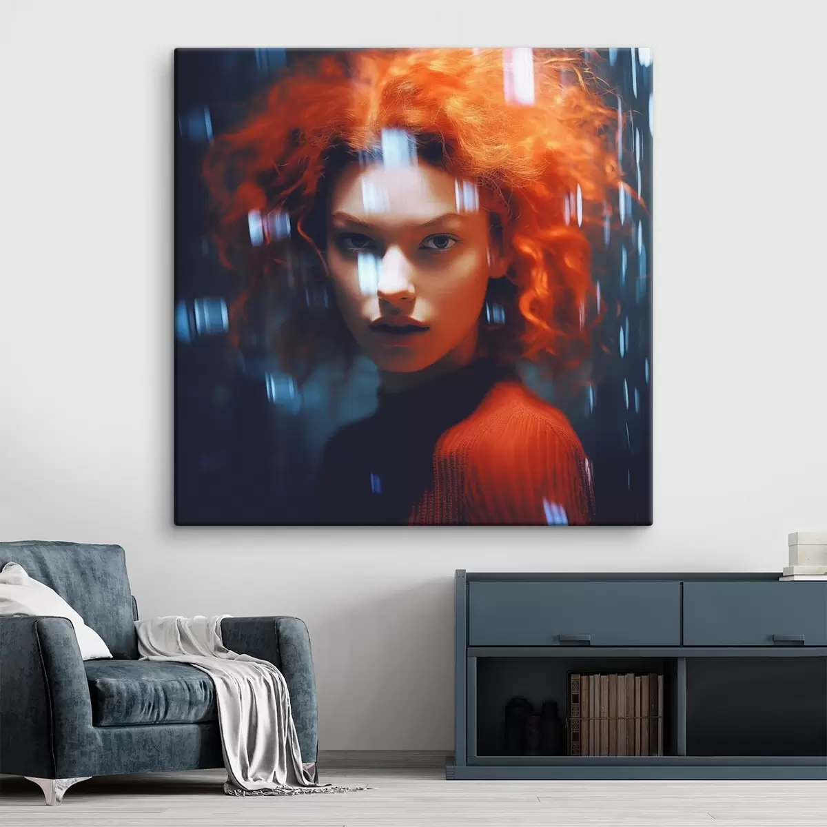 Glezna Meitene ar sarkaniem matiem uz tumši zila fona Nr s41934