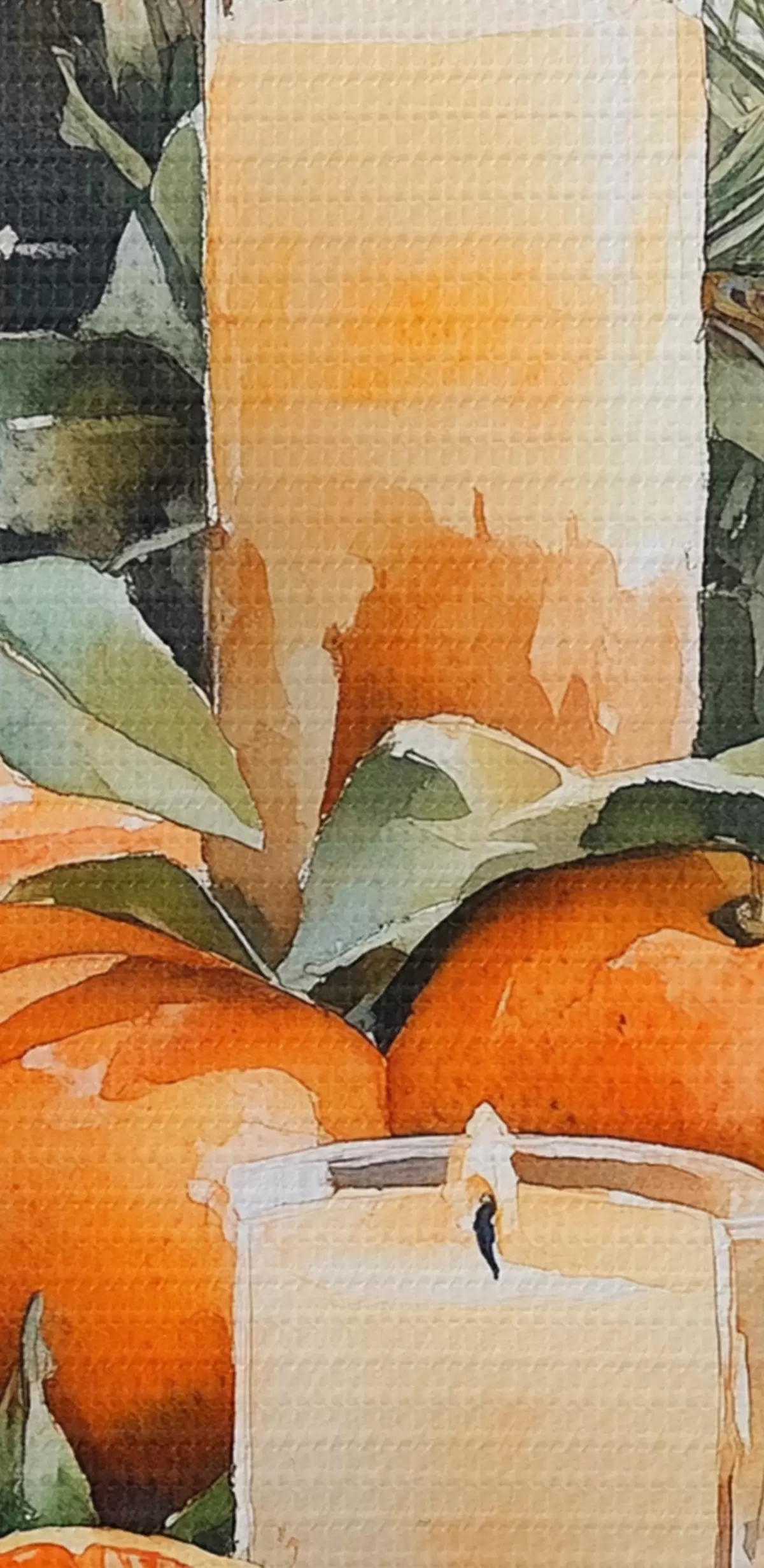 Smalkais diegu pinums uz šī audekla atgādina profesionālu mākslinieku audeklu virsmu.