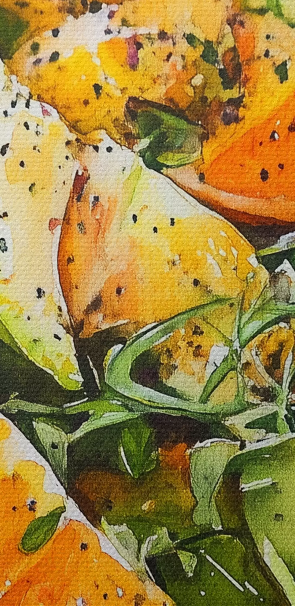 Glezna Akvareļu stila salāti ar ķirbjiem, apelsīniem un avokado  s41957