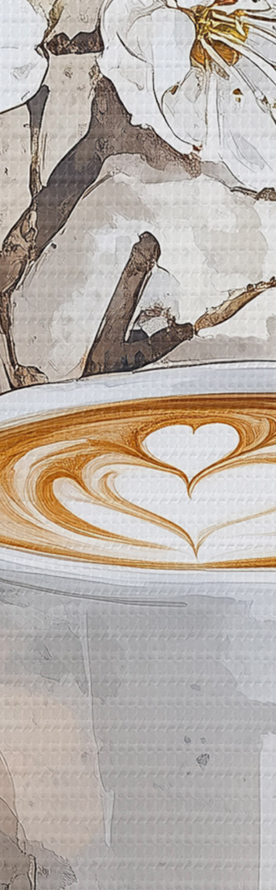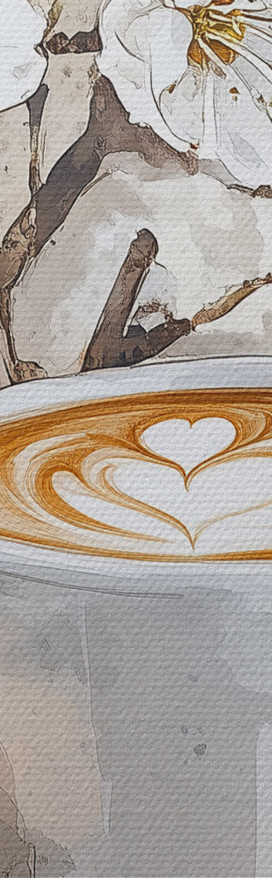 Glezna Skaista kafijas tasīte, jasmīna ziedi, makaroni, maigas akvareļu krāsas Nr s41964