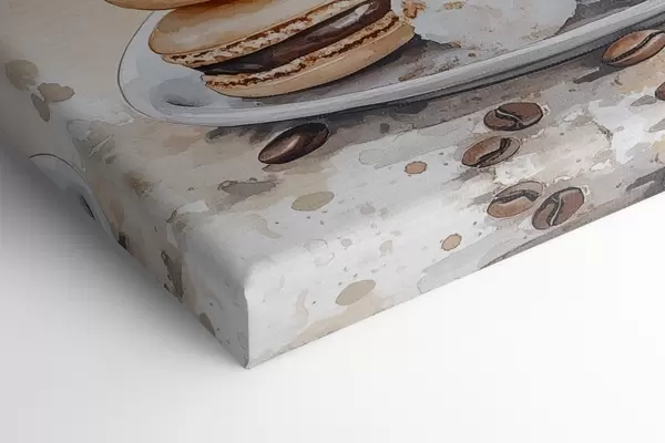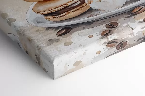 Glezna Skaista kafijas tasīte, jasmīna ziedi, makaroni, maigas akvareļu krāsas s41964