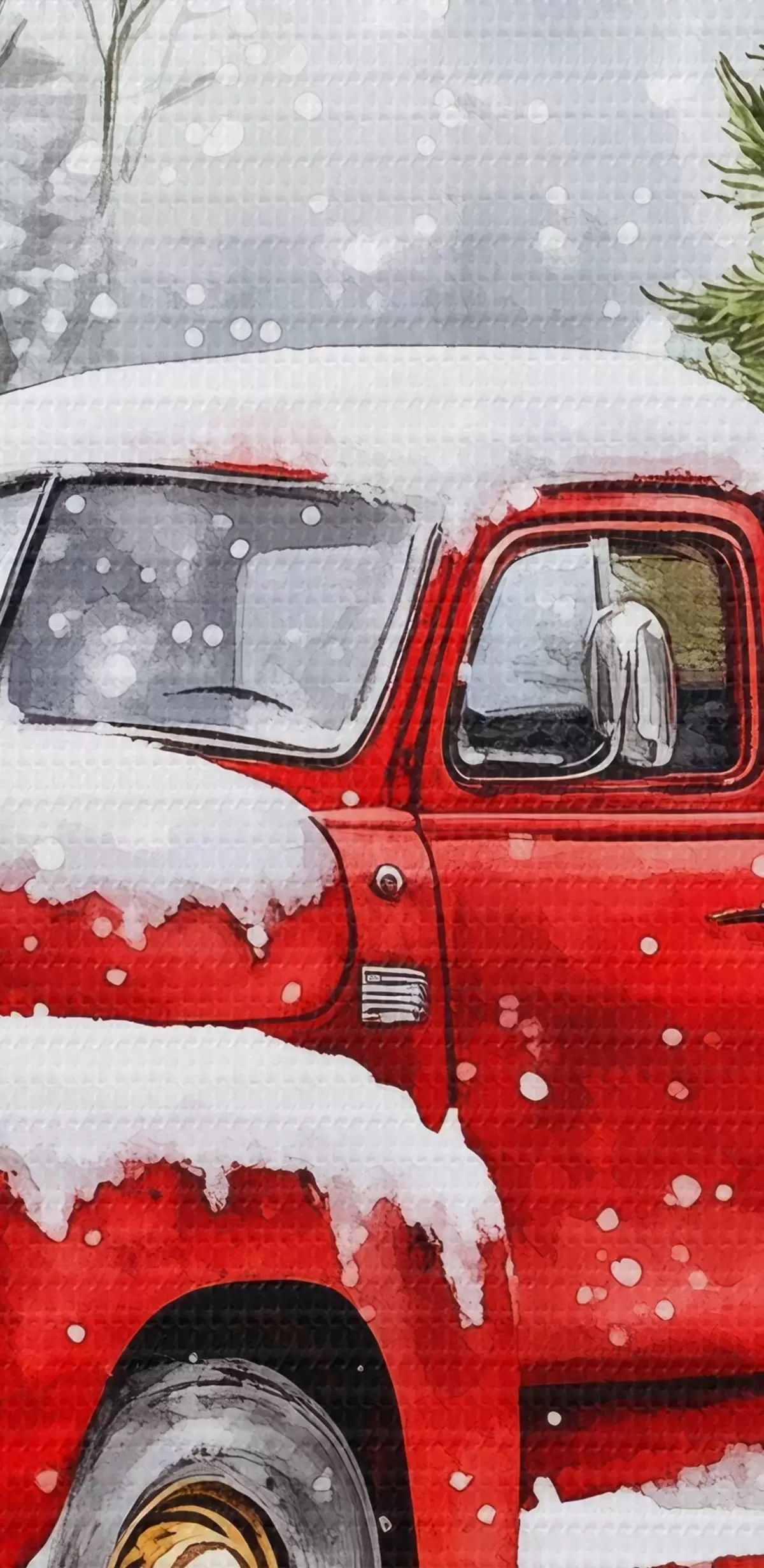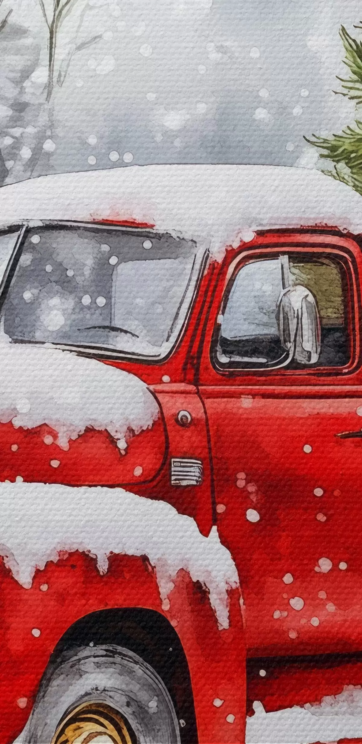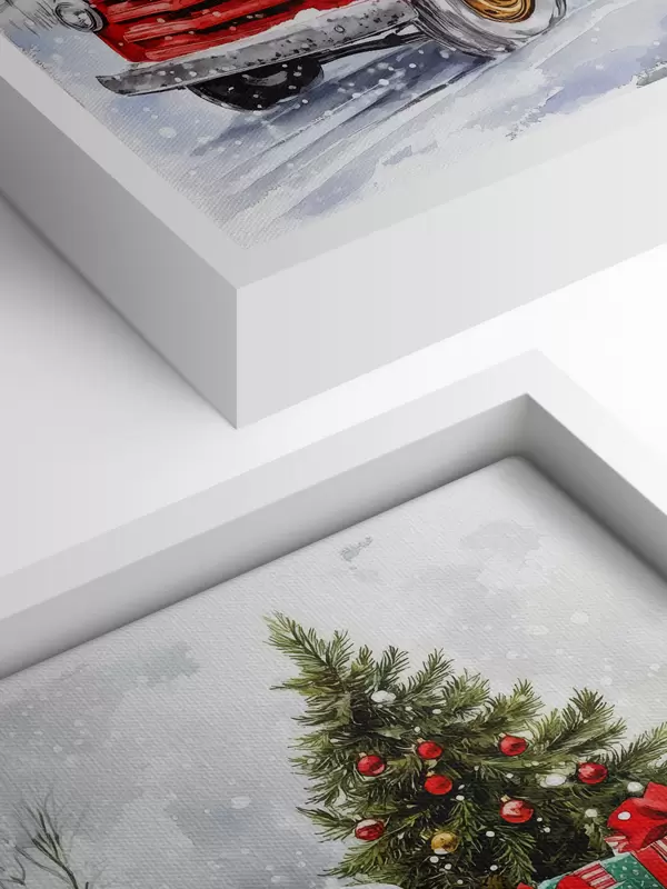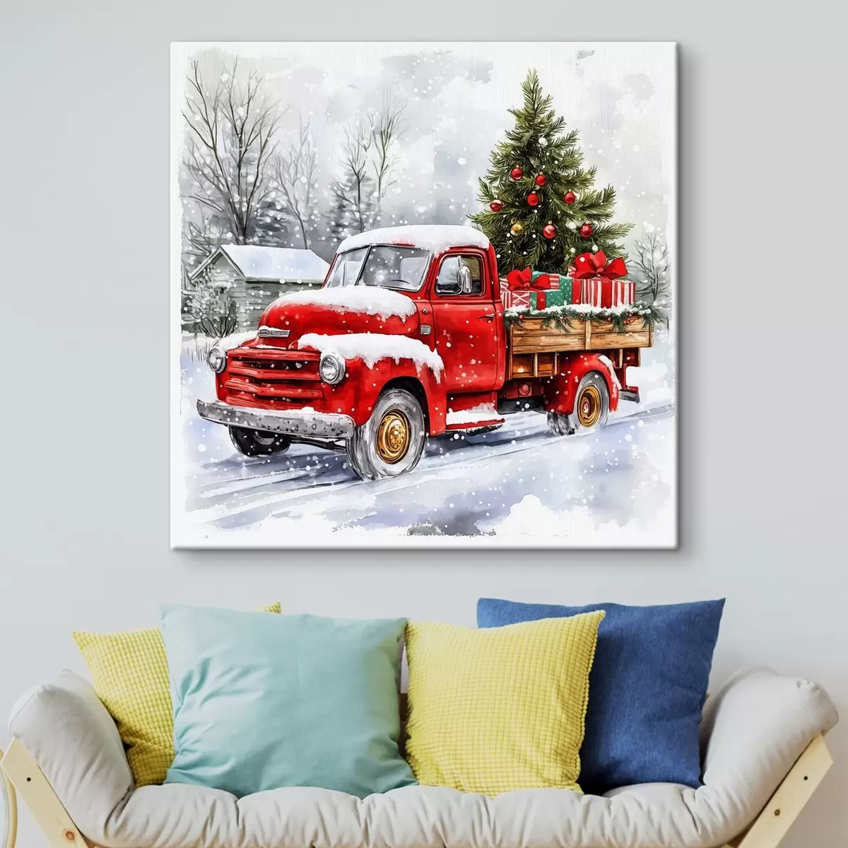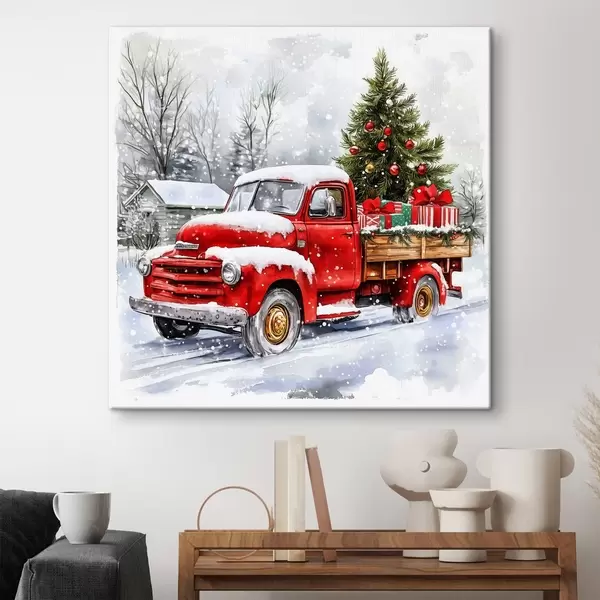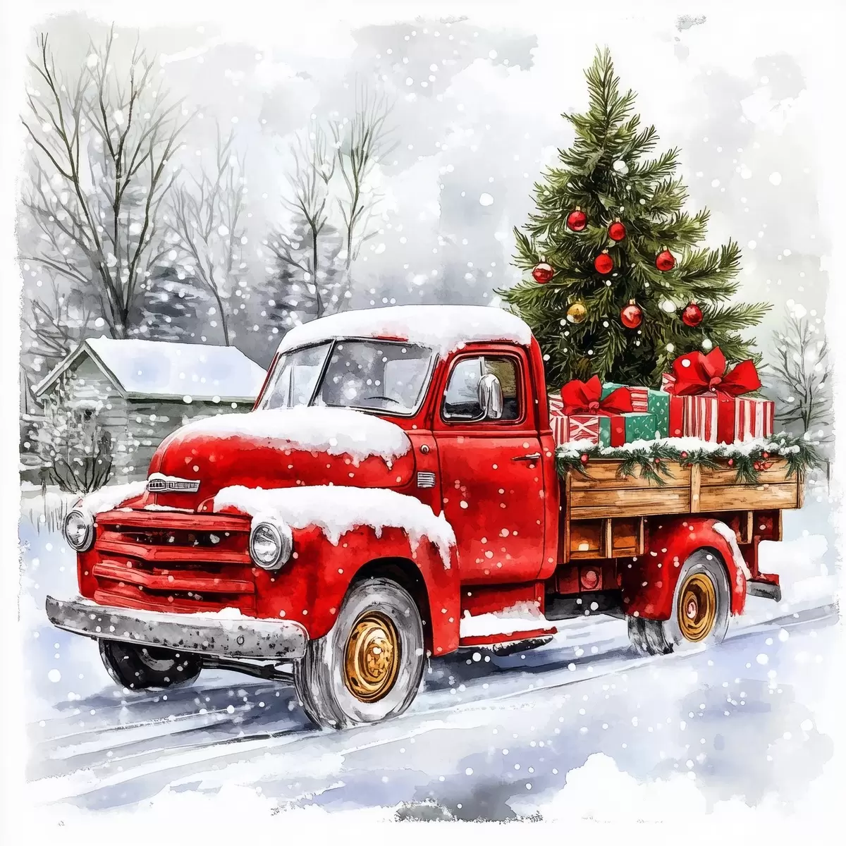 Glezna Ziemassvētku automašīna ar eglīti un dāvanām sniegotā laikā s41968