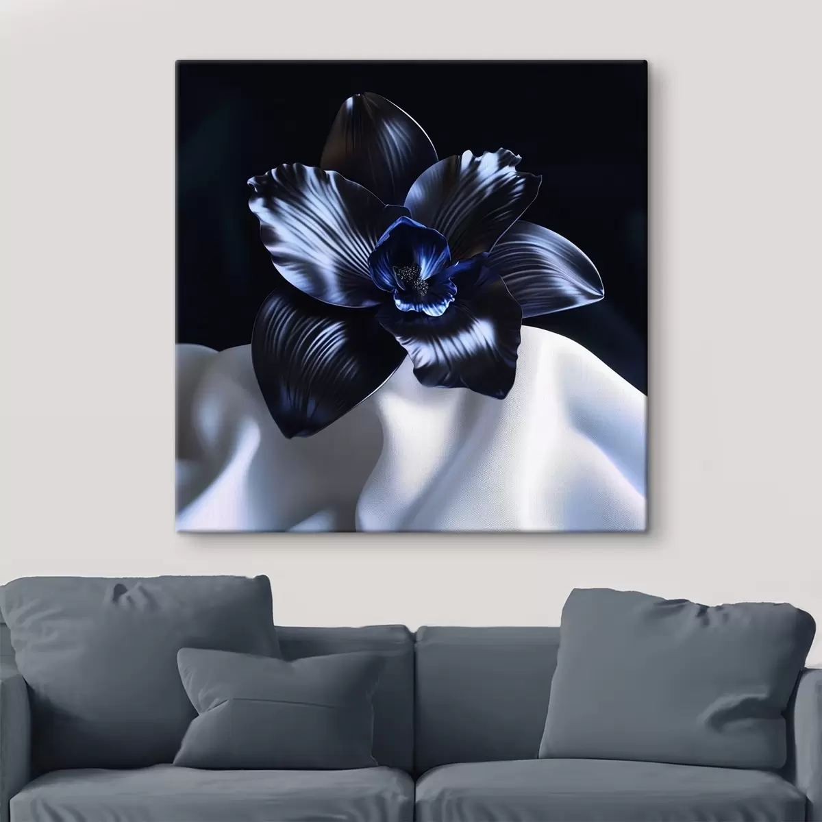 Glezna Melna orhideja uz zīda fona Nr s41976