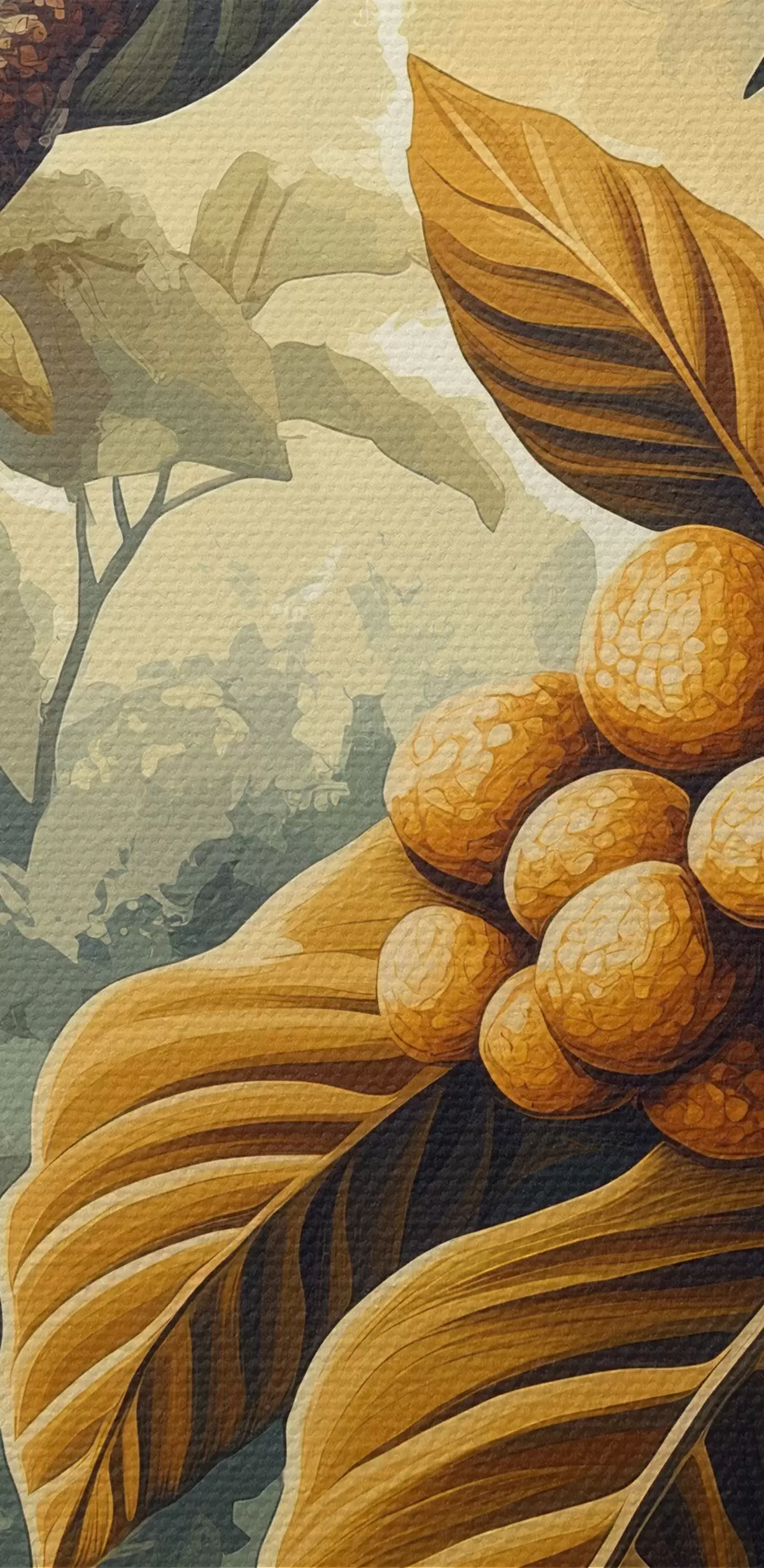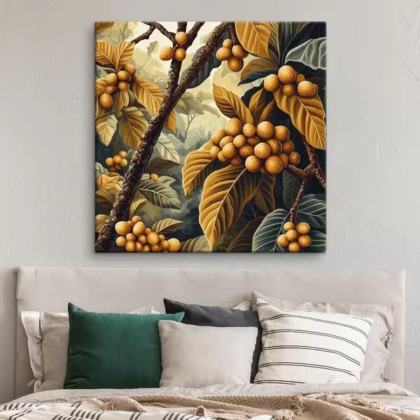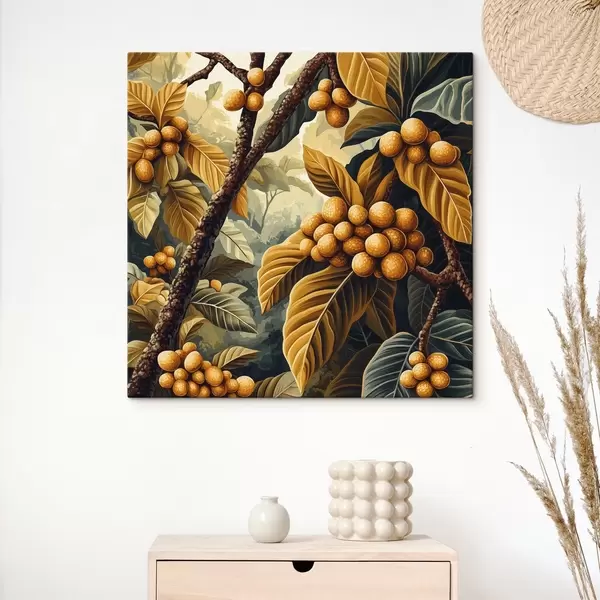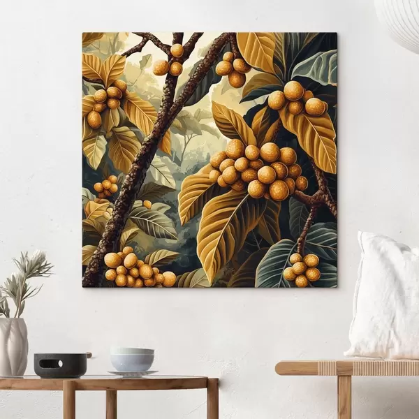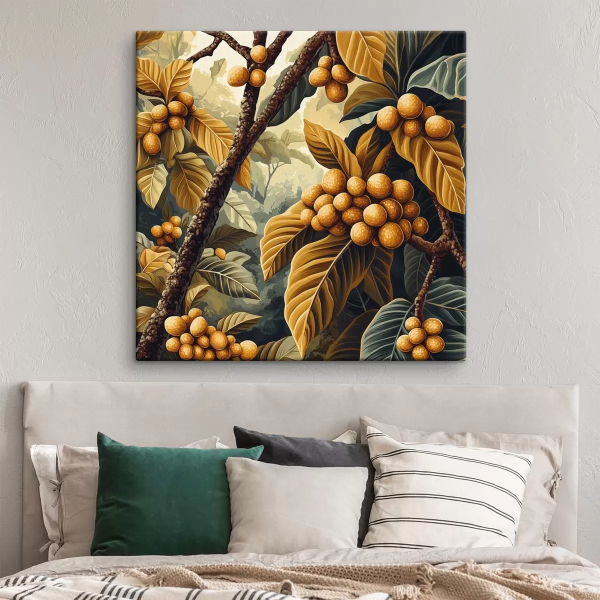 Glezna Kafijas koks ar augļiem un lapām dzeltenos toņos s41981