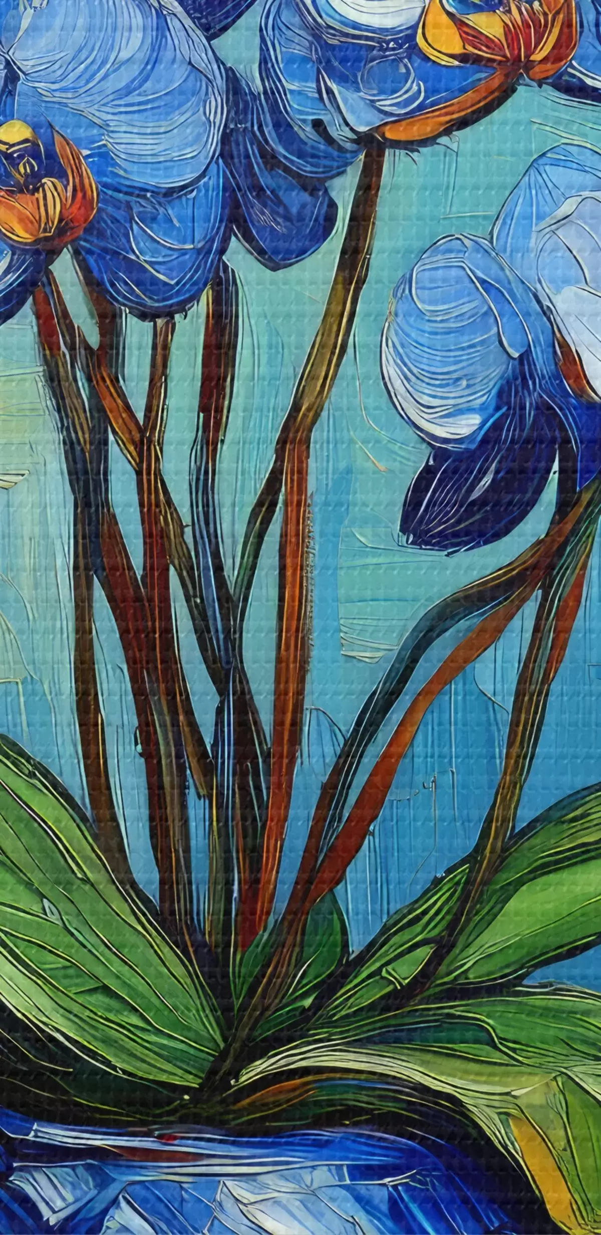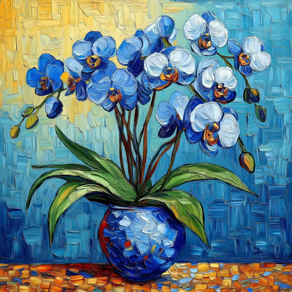 Glezna Zila orhideja vāzē Van Goga stilā, gleznas imitācija Nr s41982