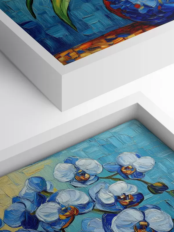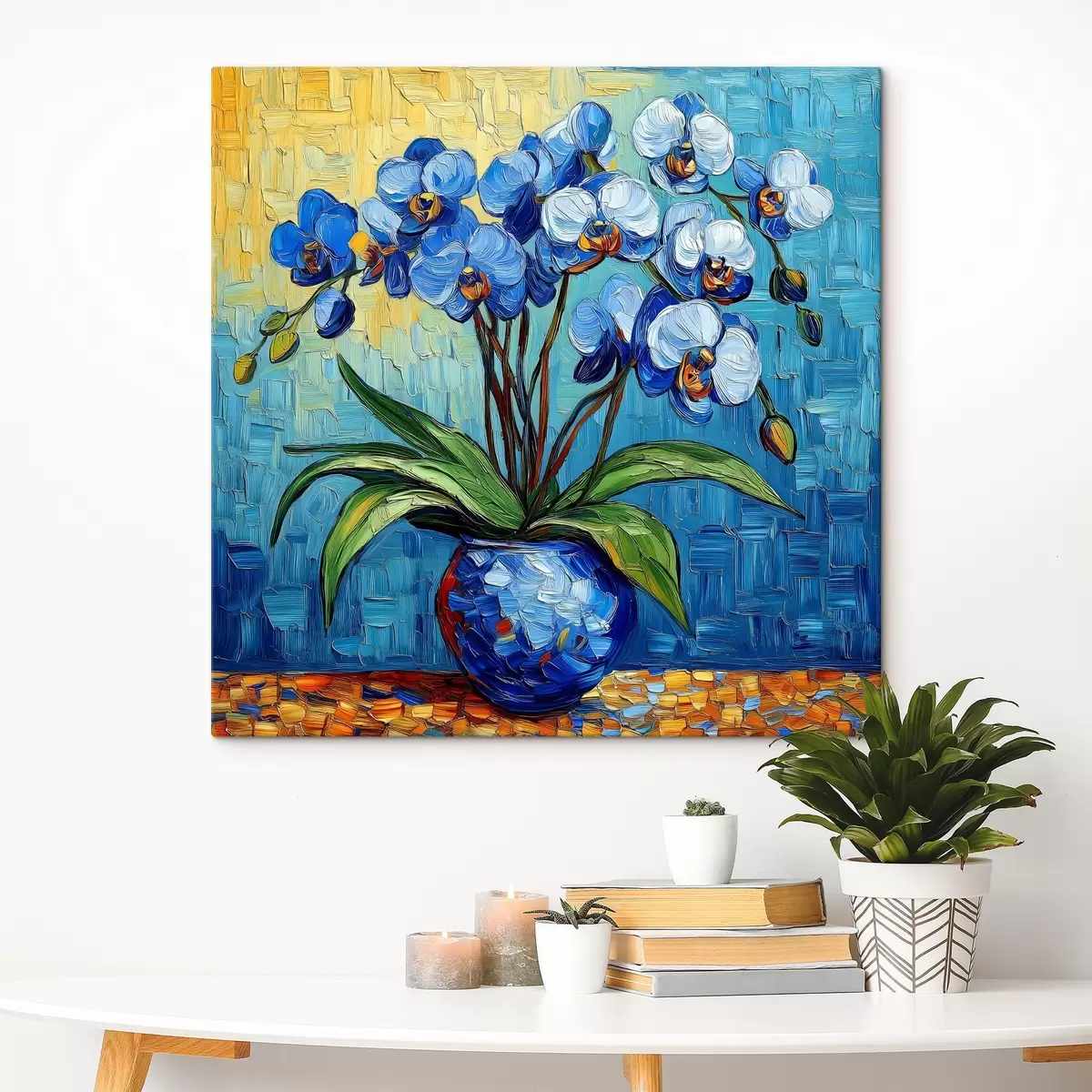 Glezna Zila orhideja vāzē Van Goga stilā, gleznas imitācija s41982