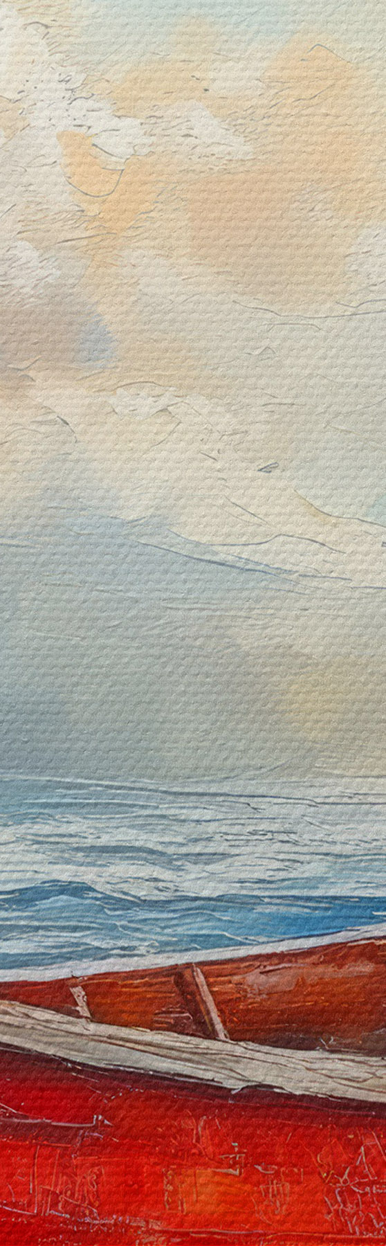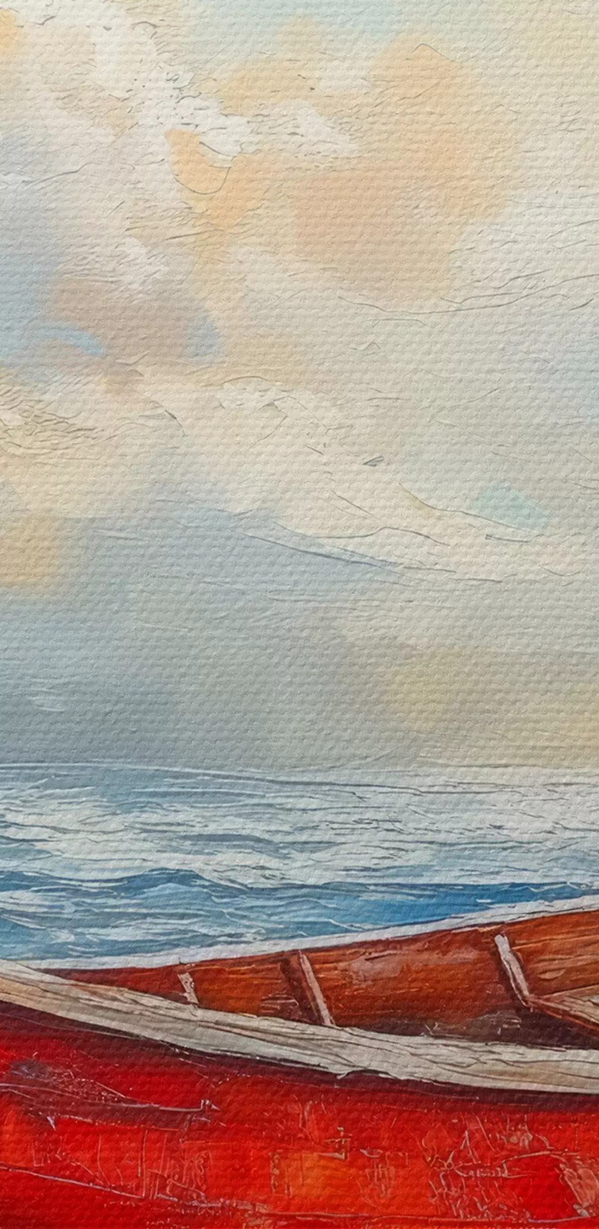 Glezna sarkana laiva pie jūras eļļas krāsu stilā Nr s42009