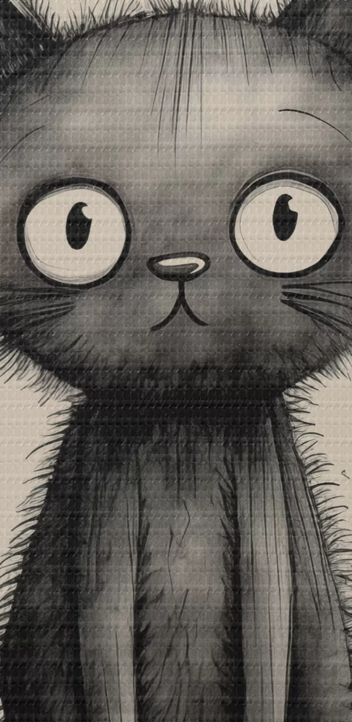 Smalkais diegu pinums uz šī audekla atgādina profesionālu mākslinieku audeklu virsmu.