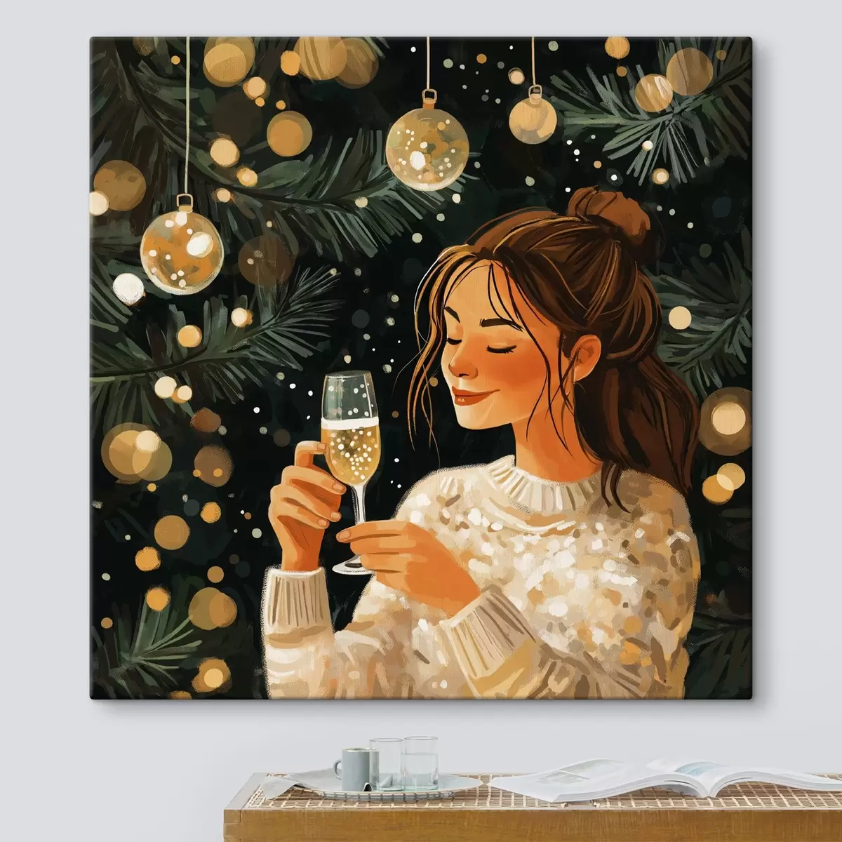 Glezna Meitene ar glāzi šampanieša Jaungada vakarā Nr s42102