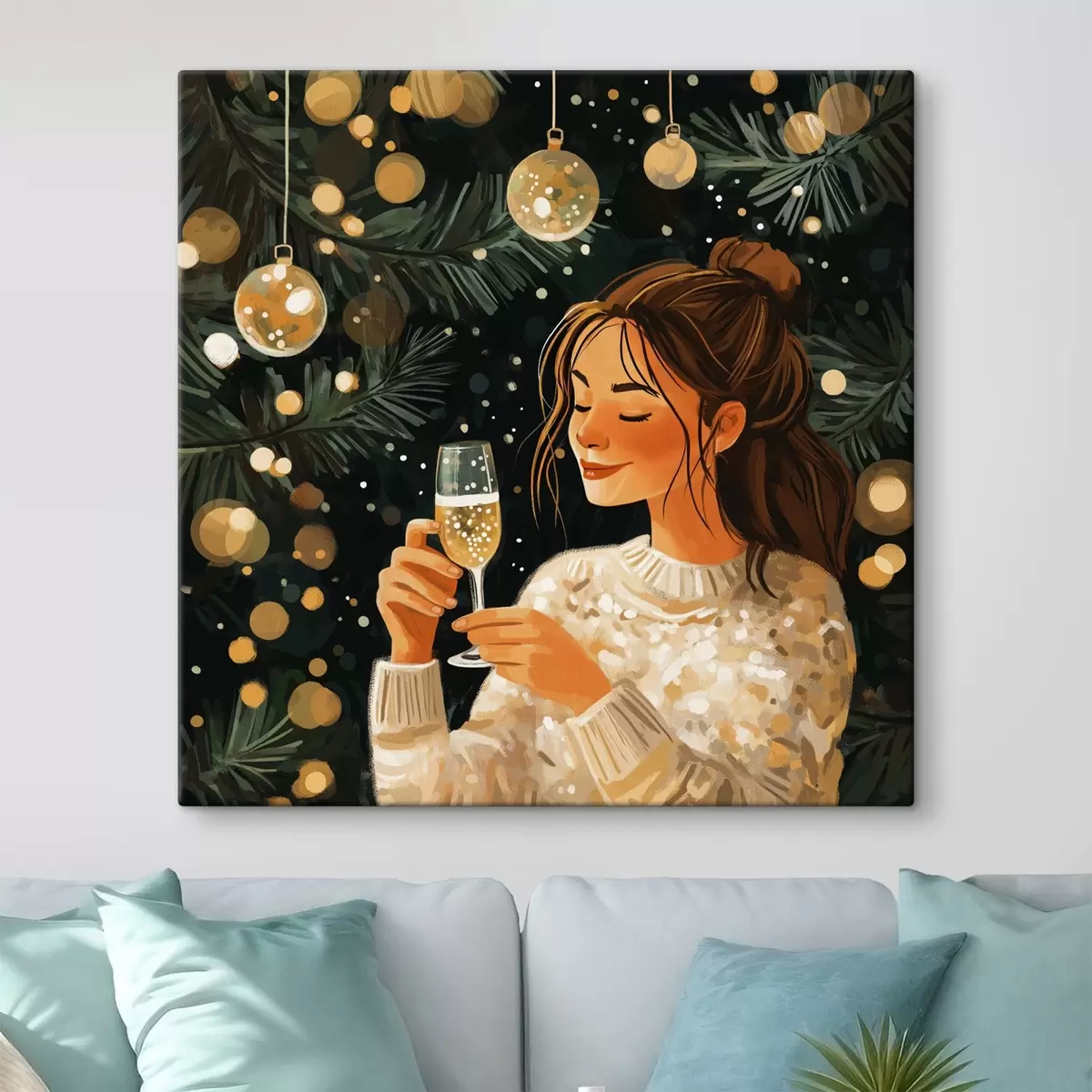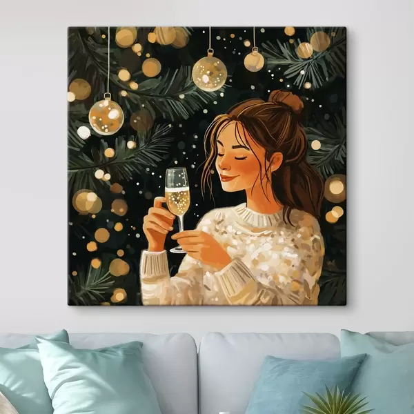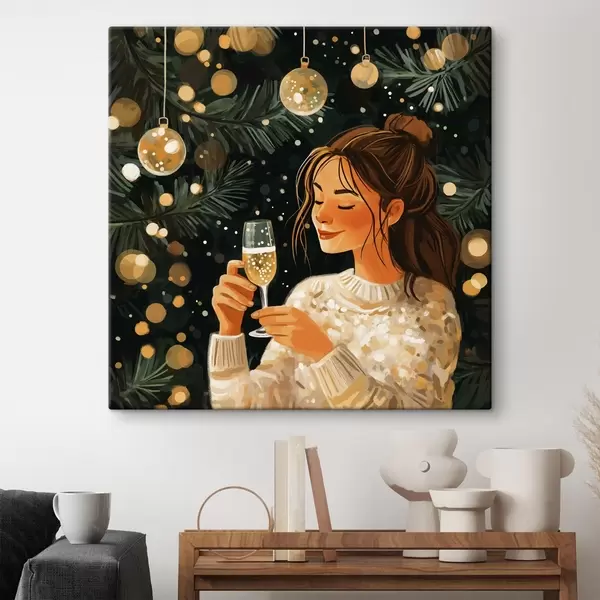 Glezna Meitene ar glāzi šampanieša Jaungada vakarā Nr s42102
