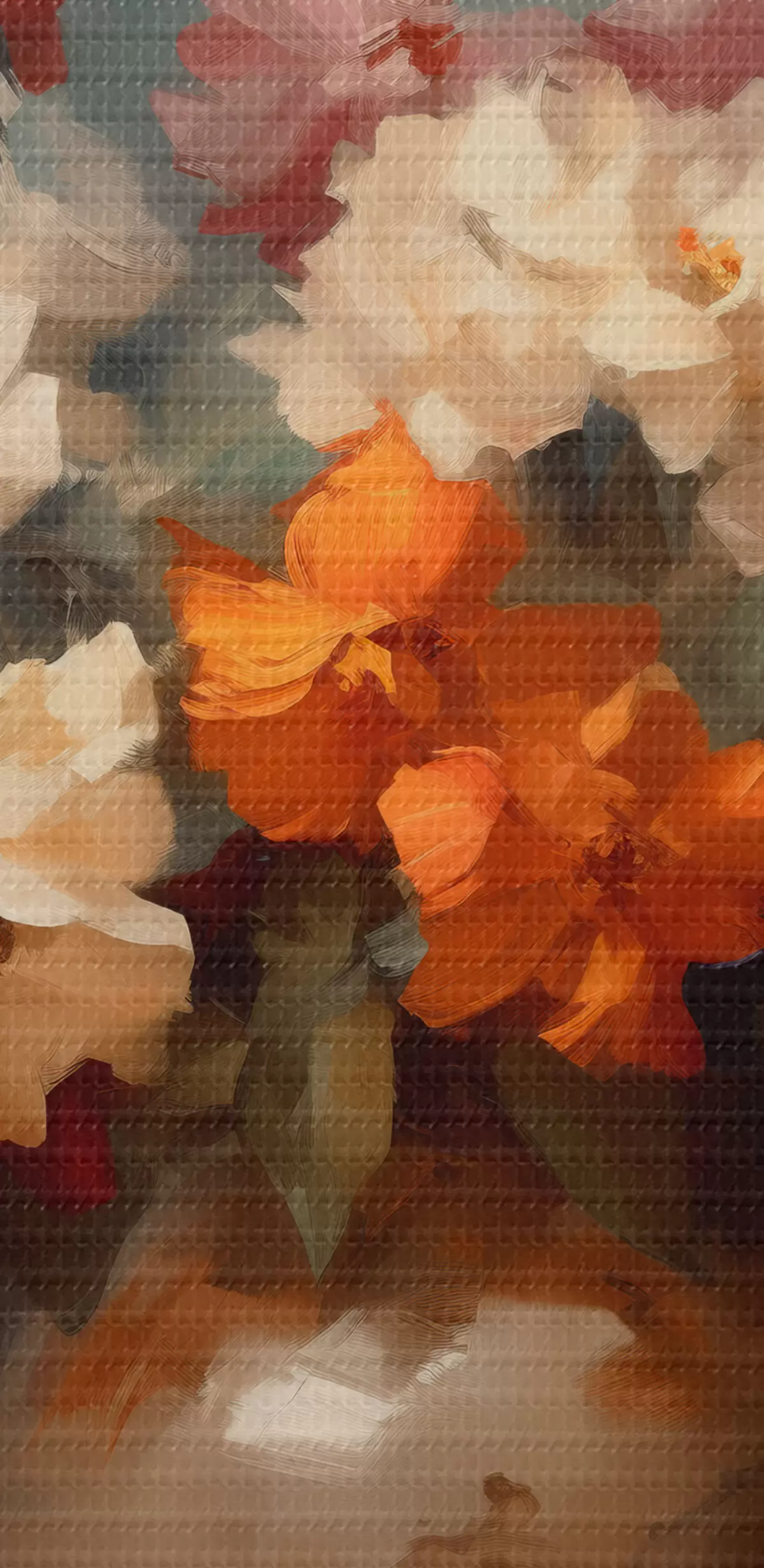 Smalkais diegu pinums uz šī audekla atgādina profesionālu mākslinieku audeklu virsmu.