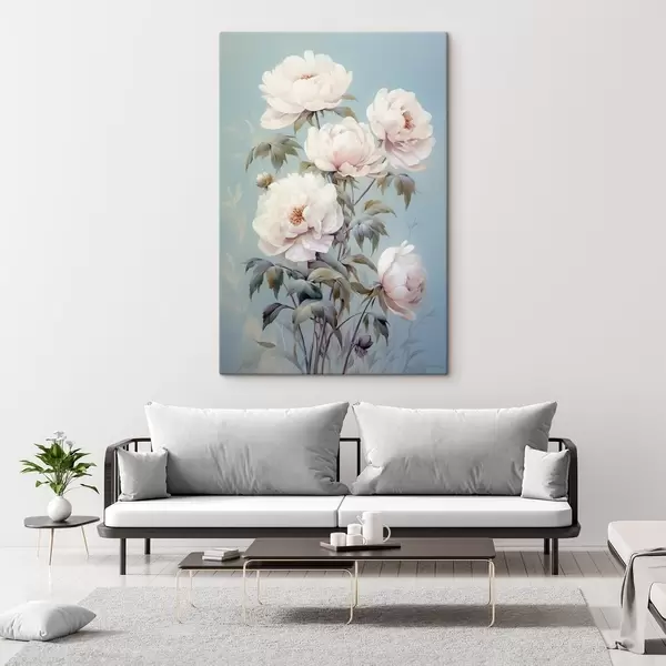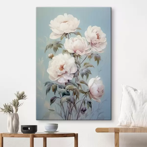 Glezna Peonijas uz pasteļzilā fona vintage stilā s42123