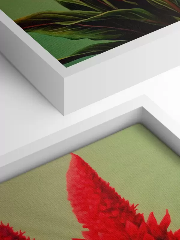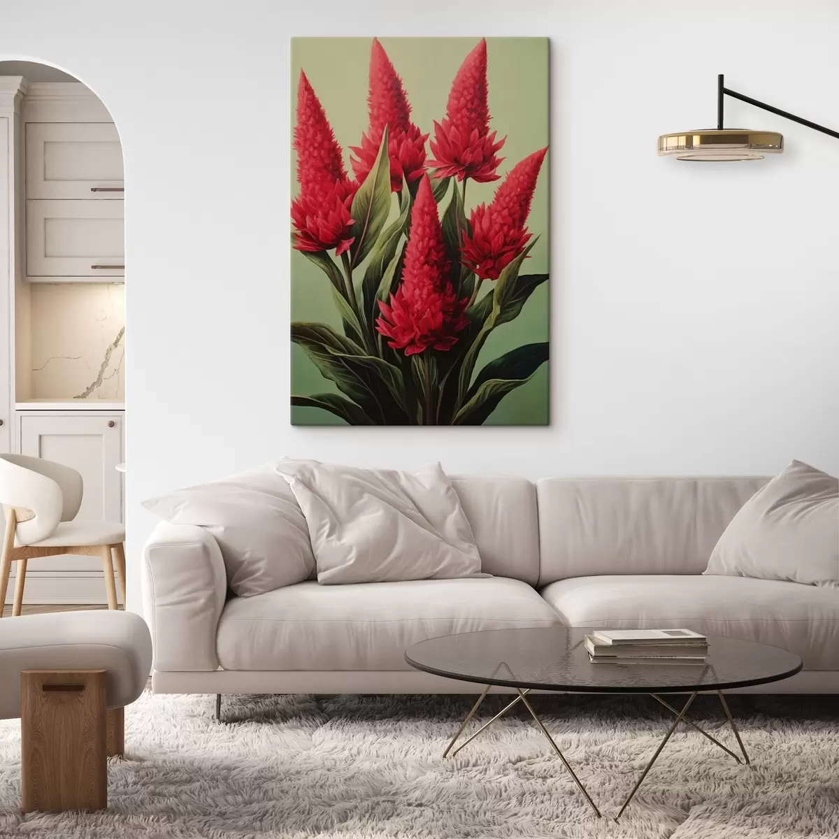 Glezna Sarkani ziedi uz zaļa fona Nr s42166