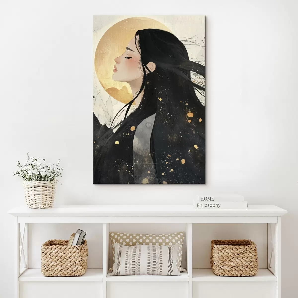 Glezna Skaista meitene ar tumšiem matiem, austrumu stilā, saule s42194