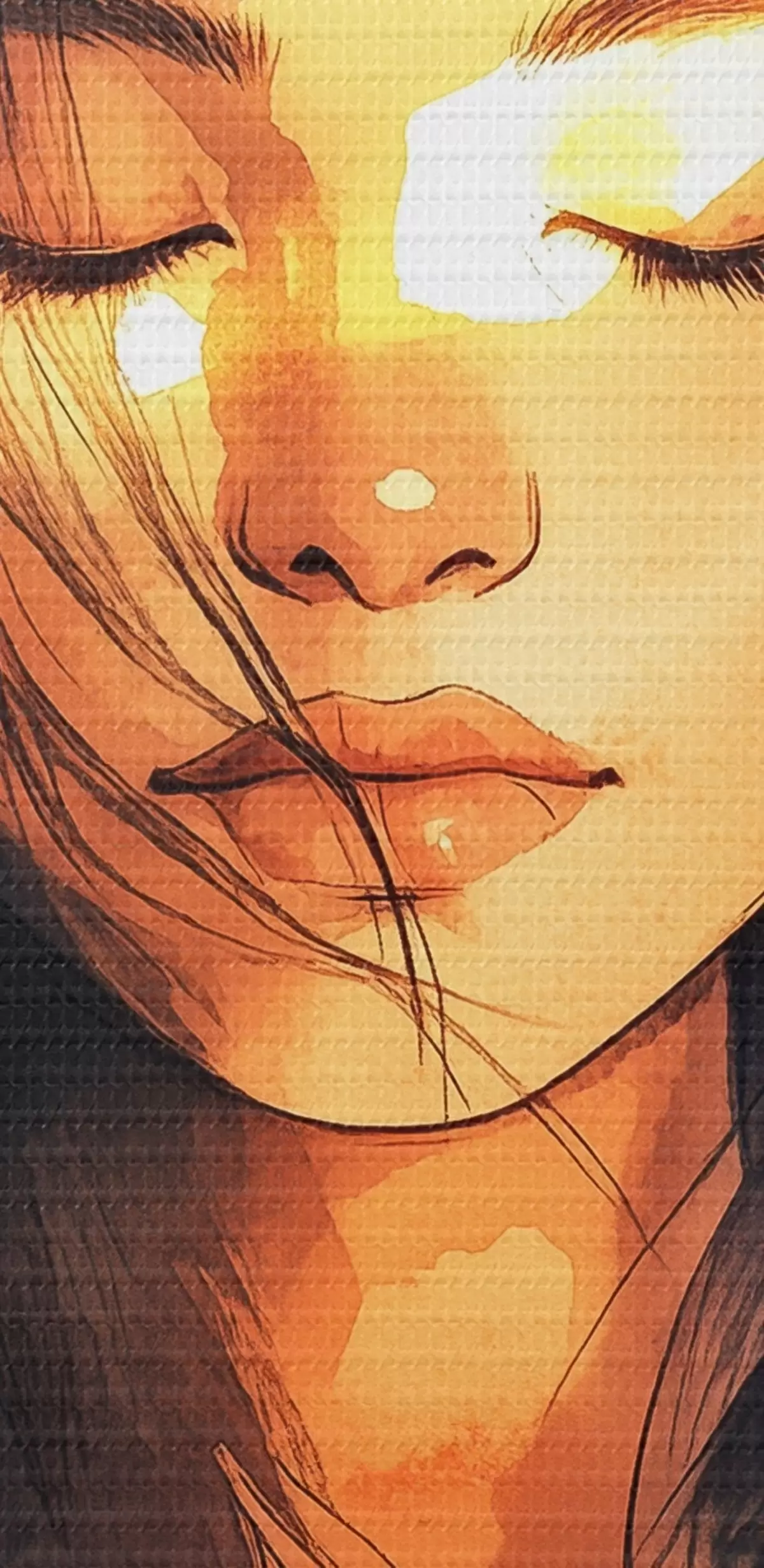 Smalkais diegu pinums uz šī audekla atgādina profesionālu mākslinieku audeklu virsmu.