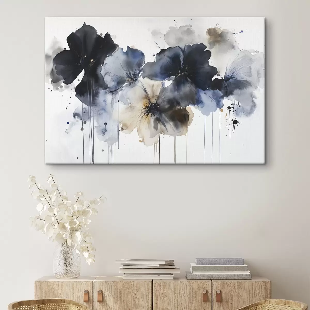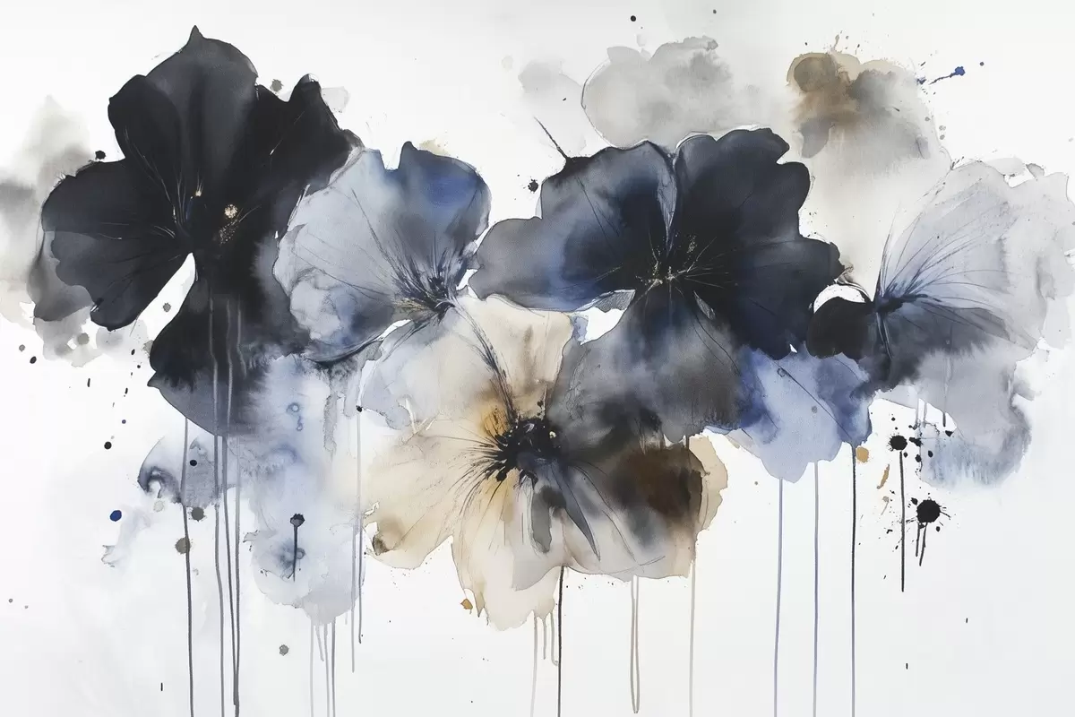 Glezna Akvareļu ziedi, šķidruma stils, zilas krāsas s42207