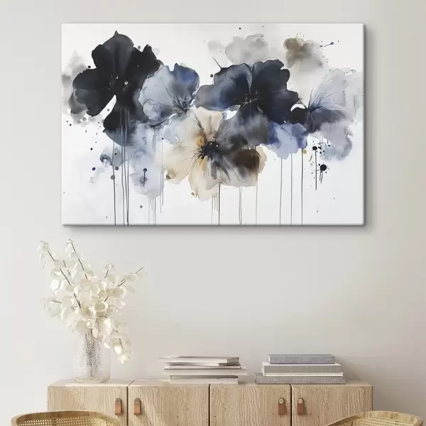 Glezna Akvareļu ziedi, šķidruma stils, zilas krāsas s42207