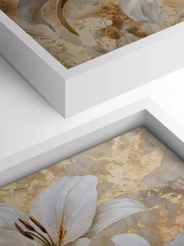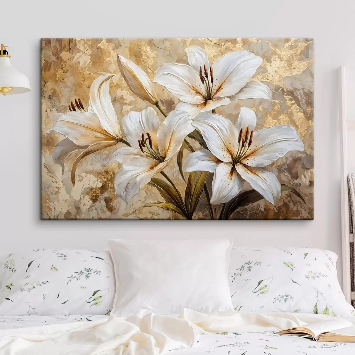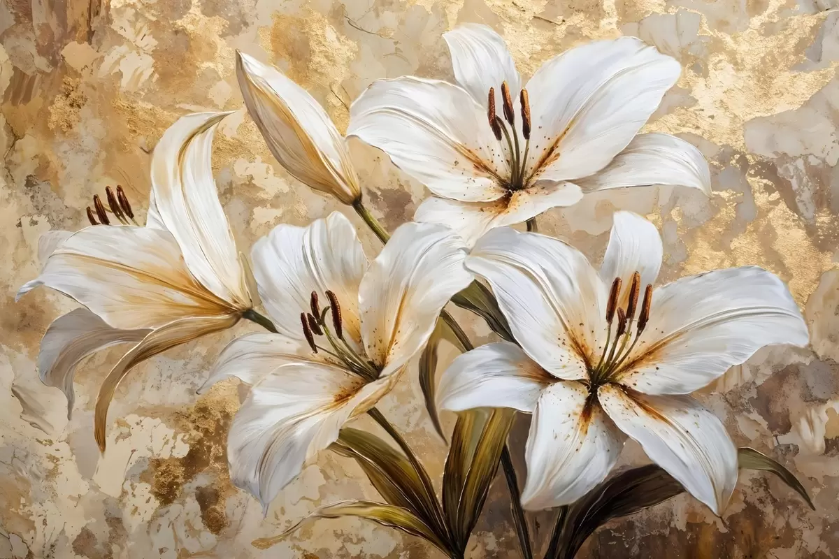 Glezna Baltas lilijas ar dzelteniem centriem uz bēša fona ar faktūru Nr s42216