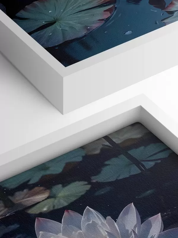 Glezna Balti lotosa ziedi peld uz klusa dīķa ar liliju spilventiņiem Nr s42225