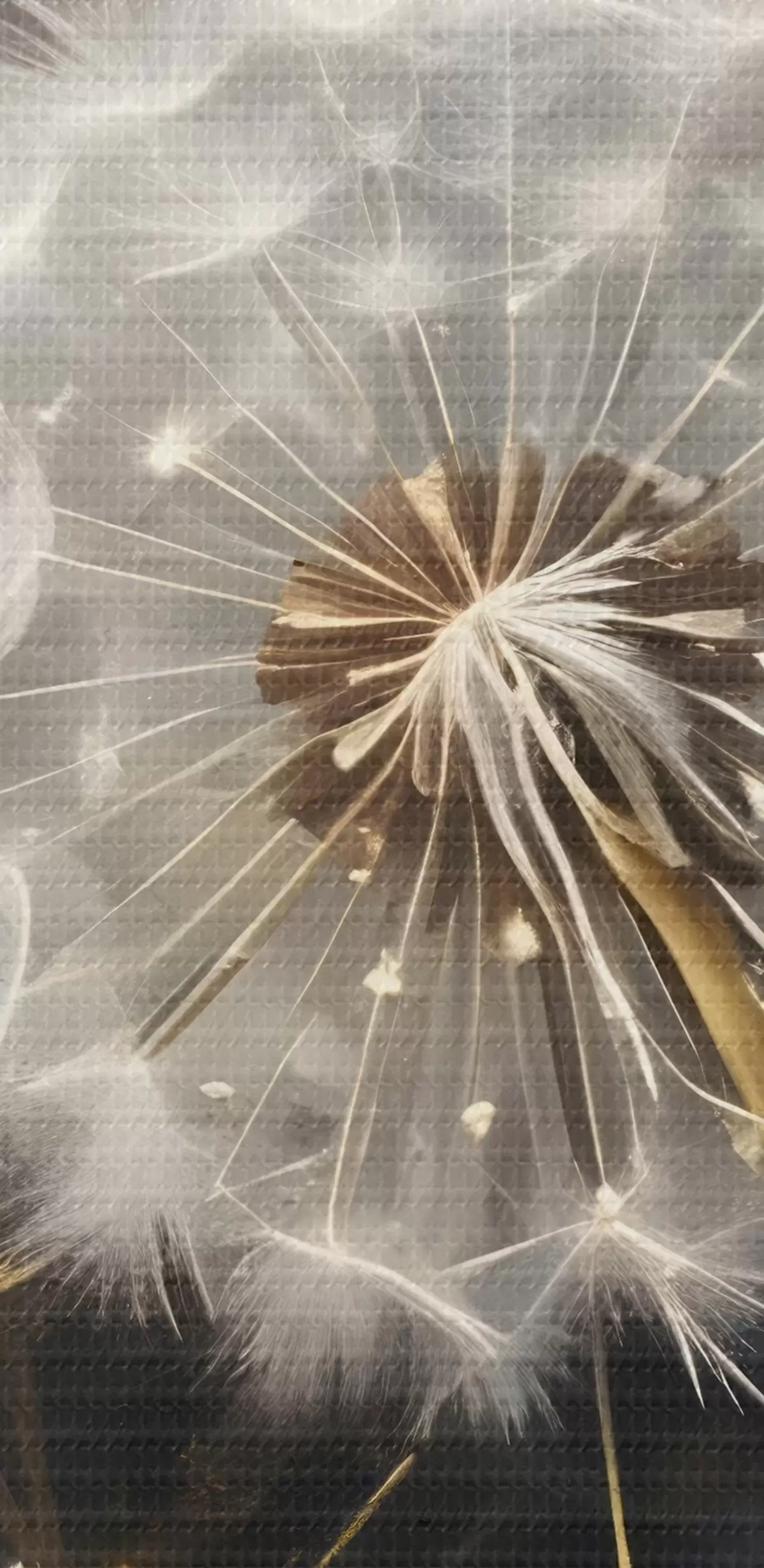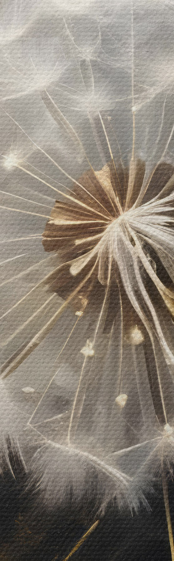 Glezna Pūkainie pieneņu ziedi ar pūkainām baltām sēklu galviņām uz tumša fona, radot burvīgu atmosfēru Nr s42235