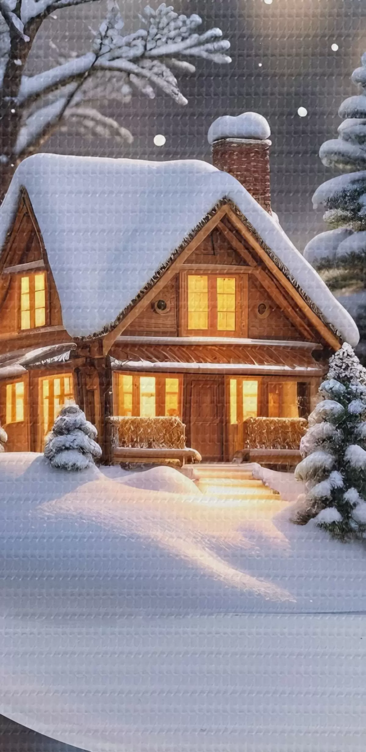 Glezna Stikla Ziemassvētku globuss ar sniegotu ziemas ainavu iekšpusē, kurā attēlota mājīga mājiņa mežā ar priedēm Nr s42236